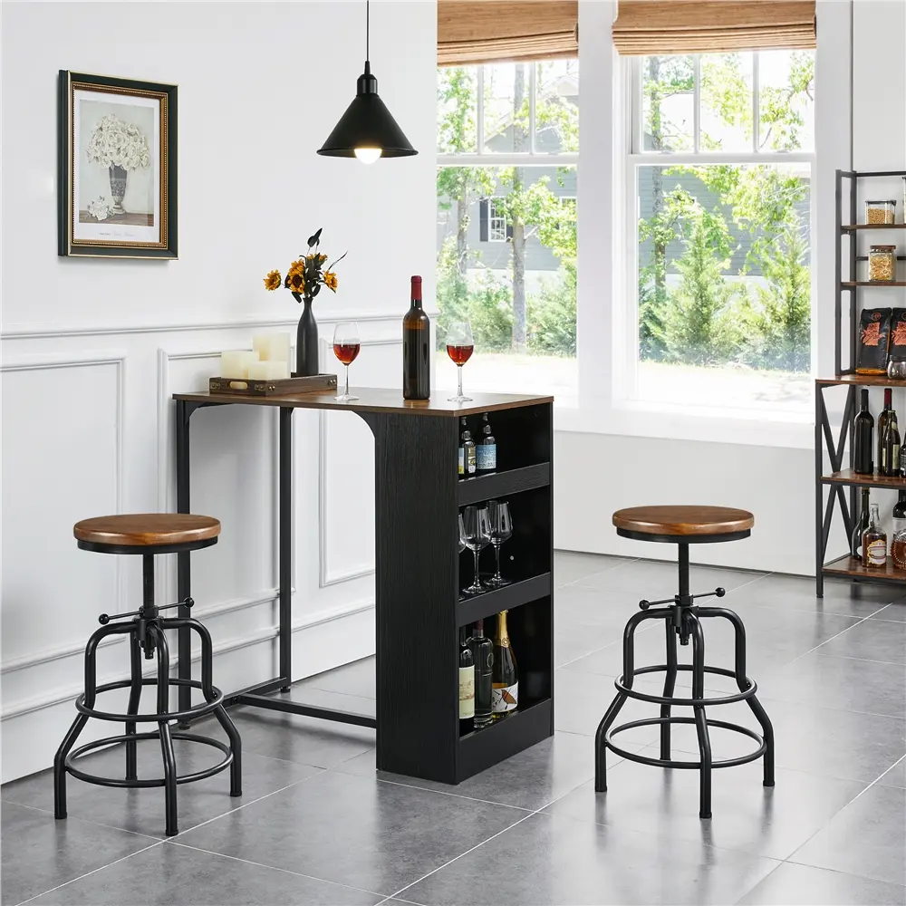 Need a rustic industrial bar stool for your kitchen island or dining room? This bar stool may be ideal for you. Crafted with solid pinewood and powder-coated metal, the stool is strong and long-lasting for kitchens, dining rooms, home bars, restaurants, etc. It weighs 13.2lb but can hold up to 300lb. The stool with an adjustable height ranging from 20-27" is ideal for different heights of counter tops, serving you well from breakfasts to midnight drinks. The double-ring footrest not only provides an extra degree for holding your legs but also enhances stability that helps secure the stool legs. With a modern farmhouse/industrial style and unique appearance, the round bar stool can match your existing house furniture effortlessly. No installation is required.