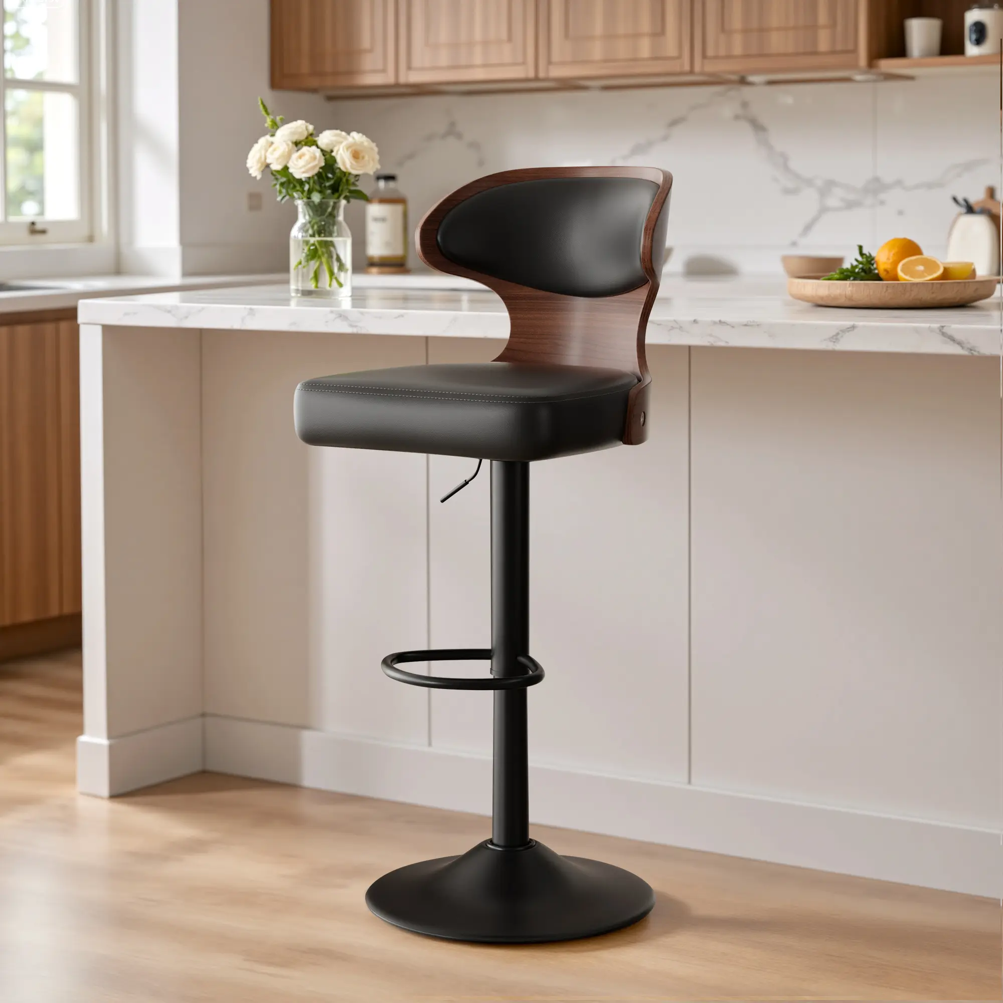 ·Practical and Functional: Experience the practicality and functionality of these bar stools, designed to elevate your seating experience. With adjustable height and a 360° swivel feature, these stools effortlessly adapt to different counter or bar heights and offer unparalleled mobility for convenient access.