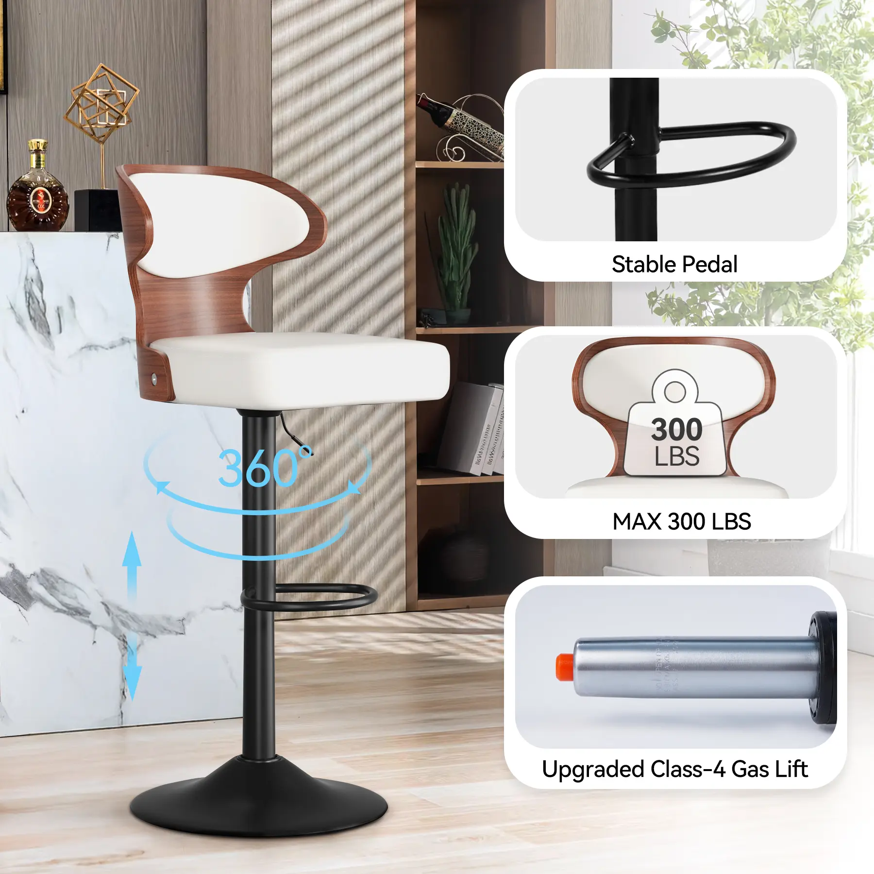 ·Practical and Functional: Experience the practicality and functionality of these bar stools, designed to elevate your seating experience. With adjustable height and a 360° swivel feature, these stools effortlessly adapt to different counter or bar heights and offer unparalleled mobility for convenient access.