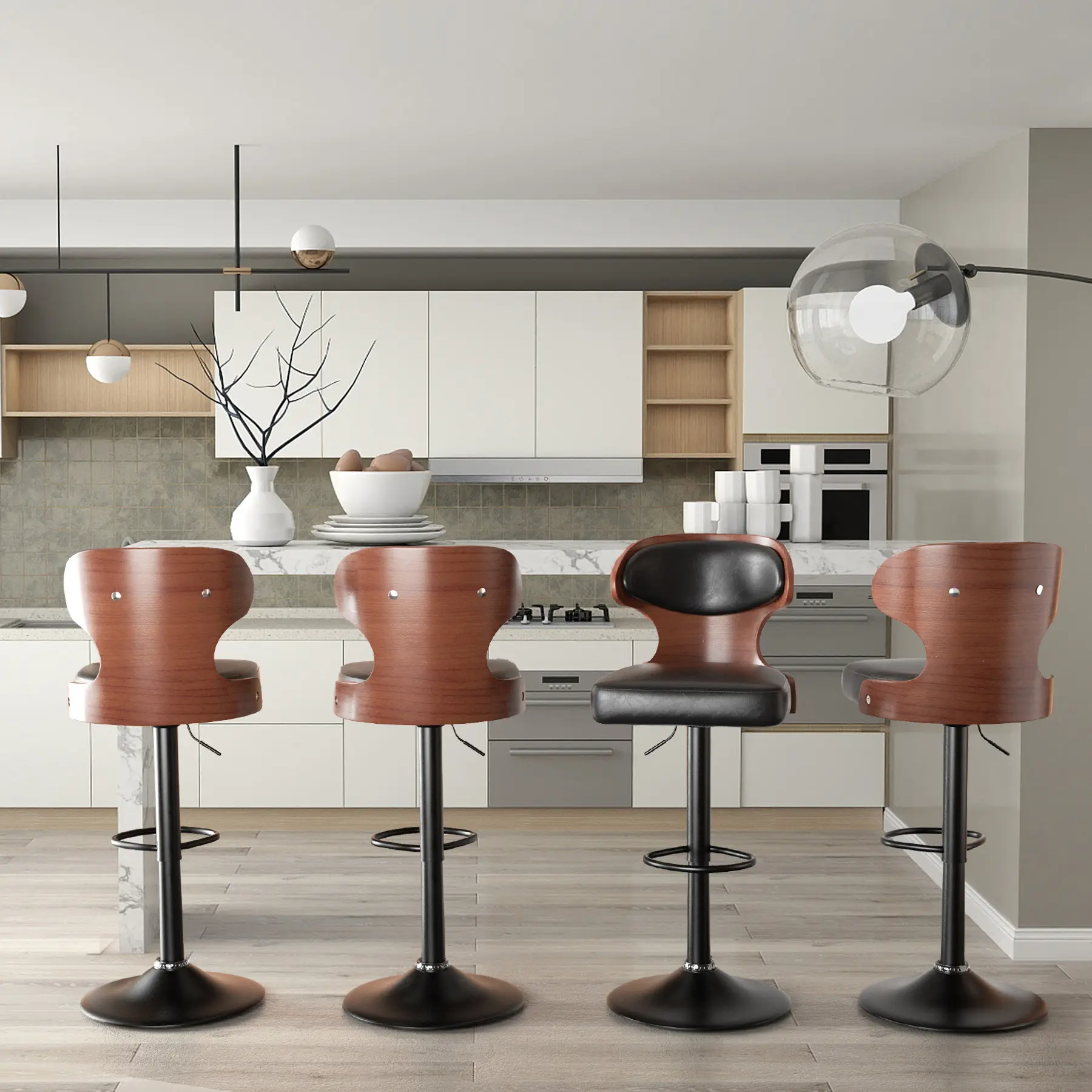 ·Practical and Functional: Experience the practicality and functionality of these bar stools, designed to elevate your seating experience. With adjustable height and a 360° swivel feature, these stools effortlessly adapt to different counter or bar heights and offer unparalleled mobility for convenient access.