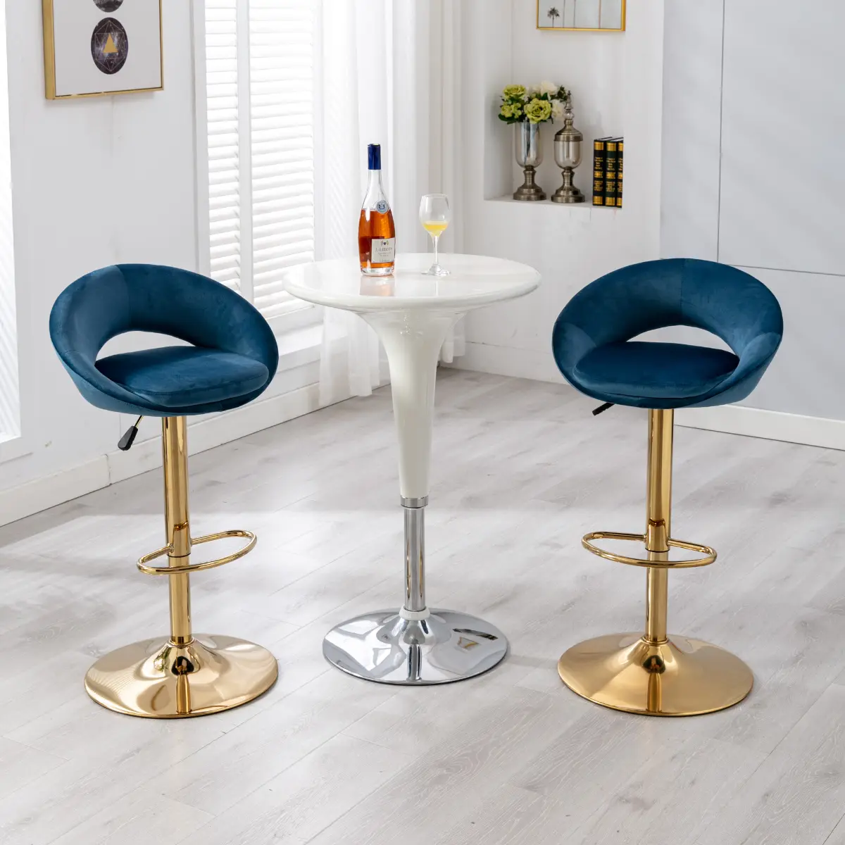 【Multiple Scenarios】The modern style gold bar stool is suitable for many scenes, you can put it in your home kitchen, living room, or bar counter. All are good choices. Sitting on the bar chair drinking and talking with your friend, you will feel life is so lovely!
