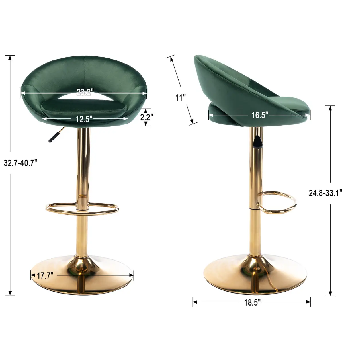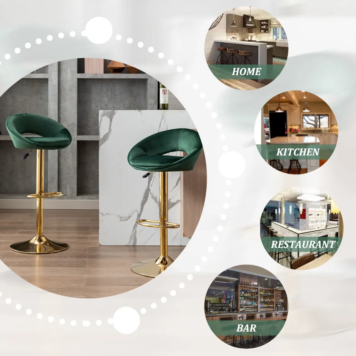 【Adjustable Heights】Perfectly match kitchen counter or home bar height! With the air-lift handle and perfect lifting mechanism, 360° Swivel for easy direction and height adjustment. .