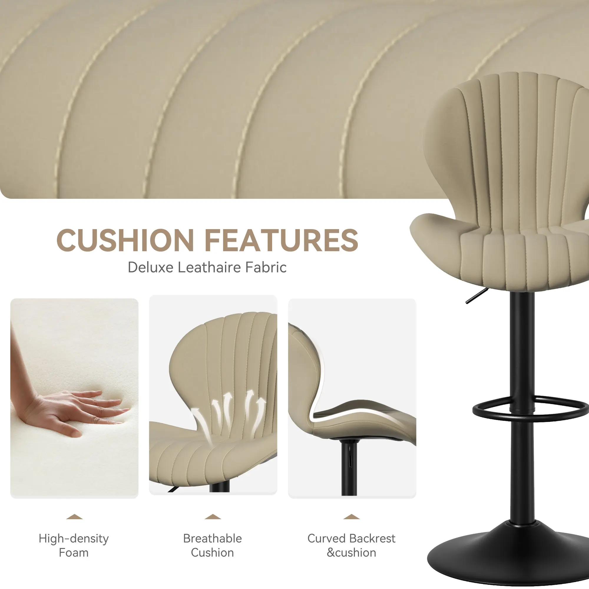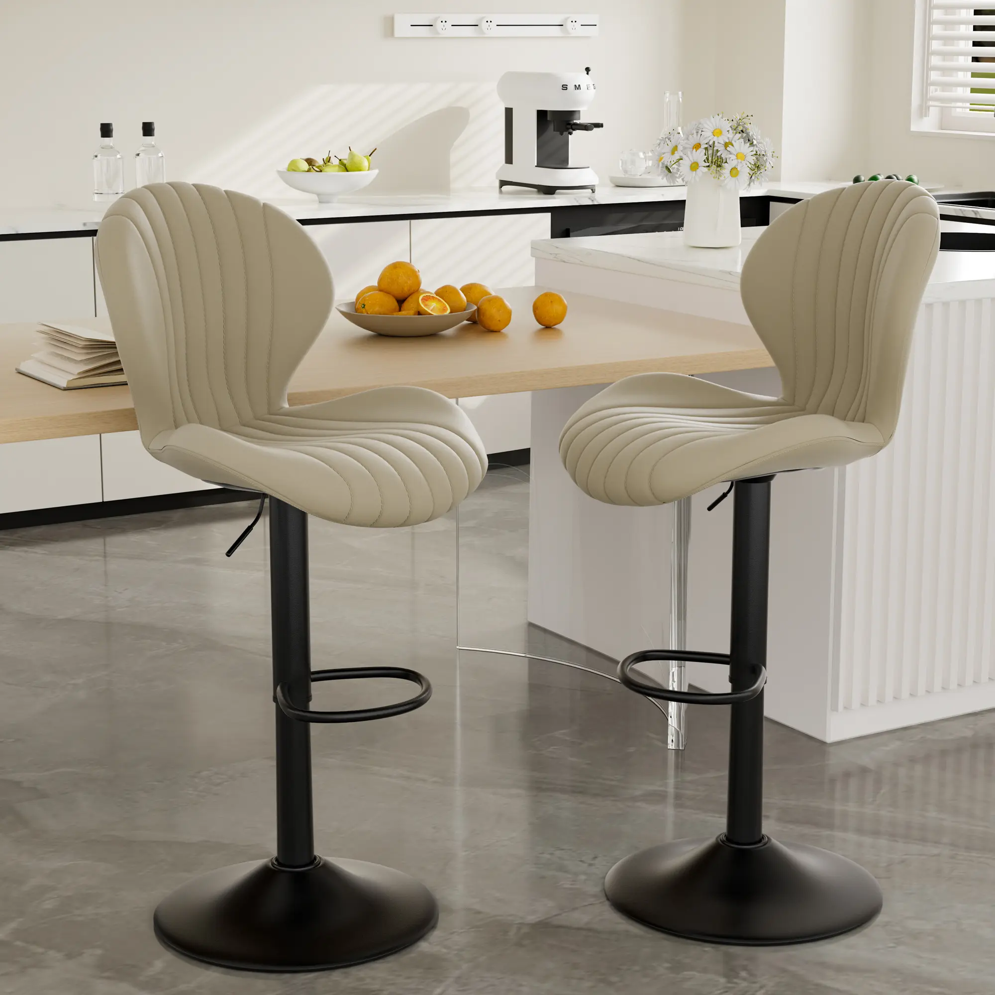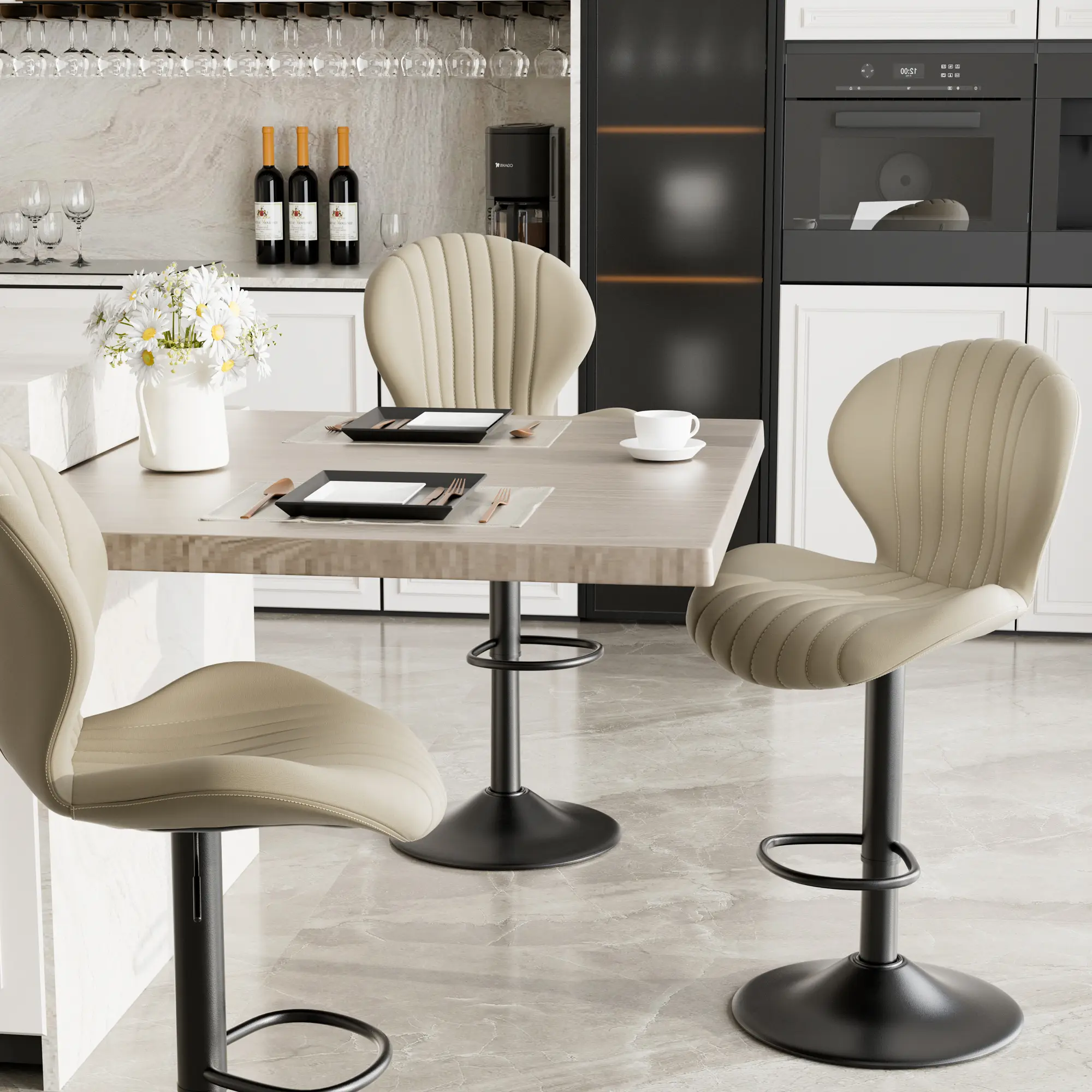 Chairs were super easy to assemble, seats themselves are comfortable but sturdy. These chairs can be adjusted to any bar height and spin 360 with ease. Shipping took less than a week which is always a plus. Very please with this purchase !