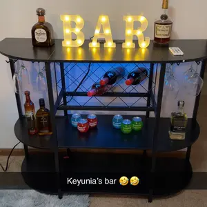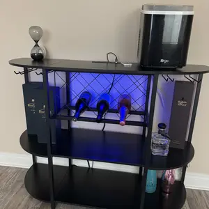 This Bar Table Cabinet with Power Outlet is a versatile and functional piece for any home, offering customizable lighting, power outlets, and ample storage space. It is perfect for creating a cozy and inviting atmosphere for entertaining guests.