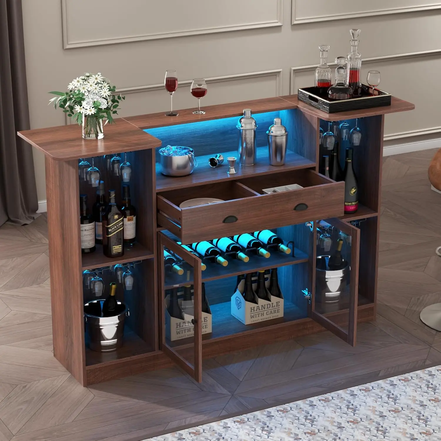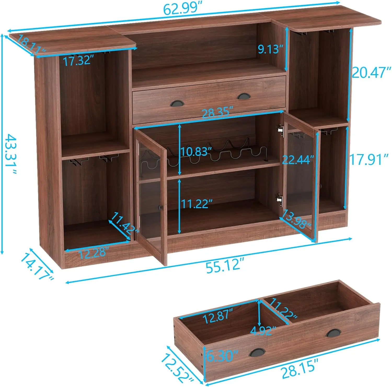 • Multi-functional Design: Includes an LED light, spacious drawer, wine cabinet, wine glass rack, and storage shelves — use as a bar cabinet, coffee bar, sideboard, or buffet.