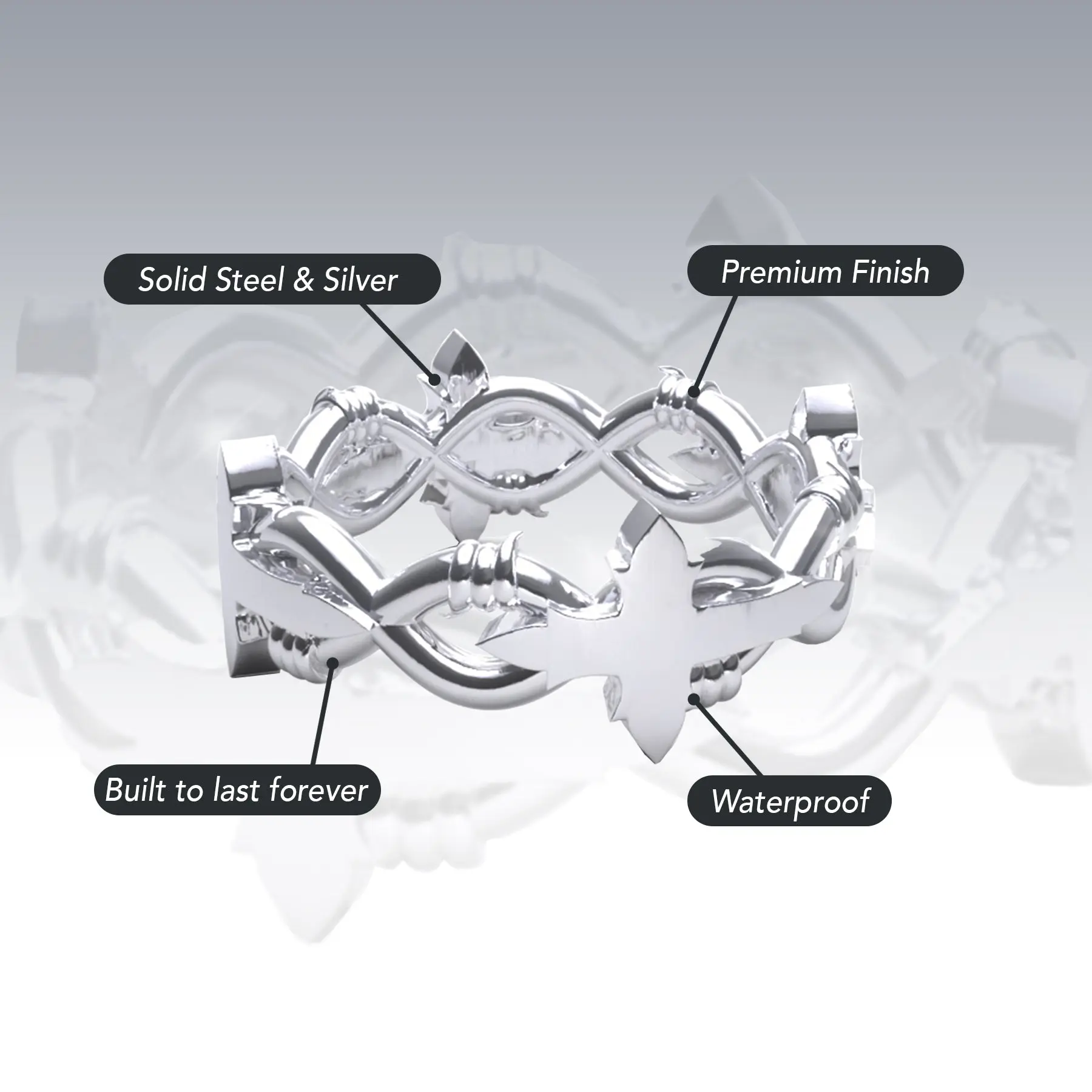 I absolutely love the design of the ring :) I only have one tiny issue which is that the crosses do poke into your hand on the inside. Maybe if they have a just barbed wire side without the crosses so that itd be a lil more comfortable to wear