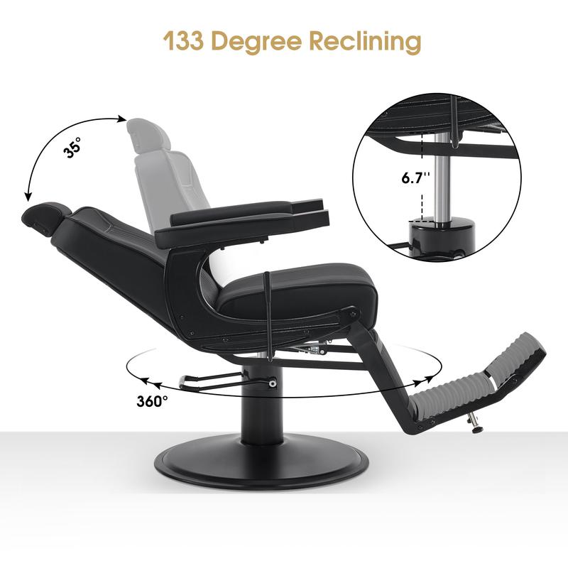 ·Easy to Install & Clean: This reclining barber chair is easy to install with a few simple steps. The backrest and armrests are detachable to increase the convenience of cleaning. The faux leather is waterproof, so you can easily wipe off the dust with a cloth.