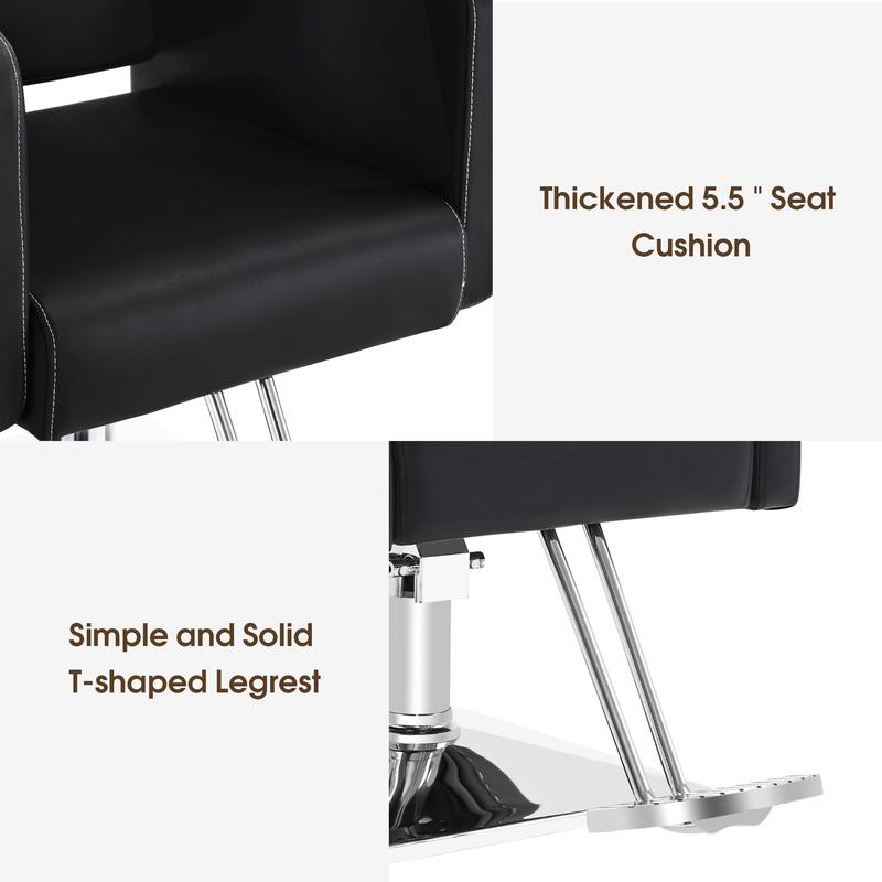 Perfect for barbershops, salons, tattoo parlors, and more. Made from high-quality materials with modern technology, this chair features textured synthetic leather, a high-density sponge for comfort, and a stylish, sturdy design.
