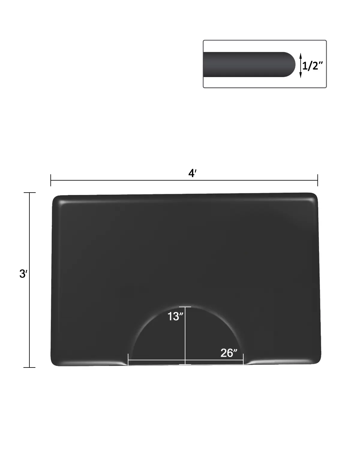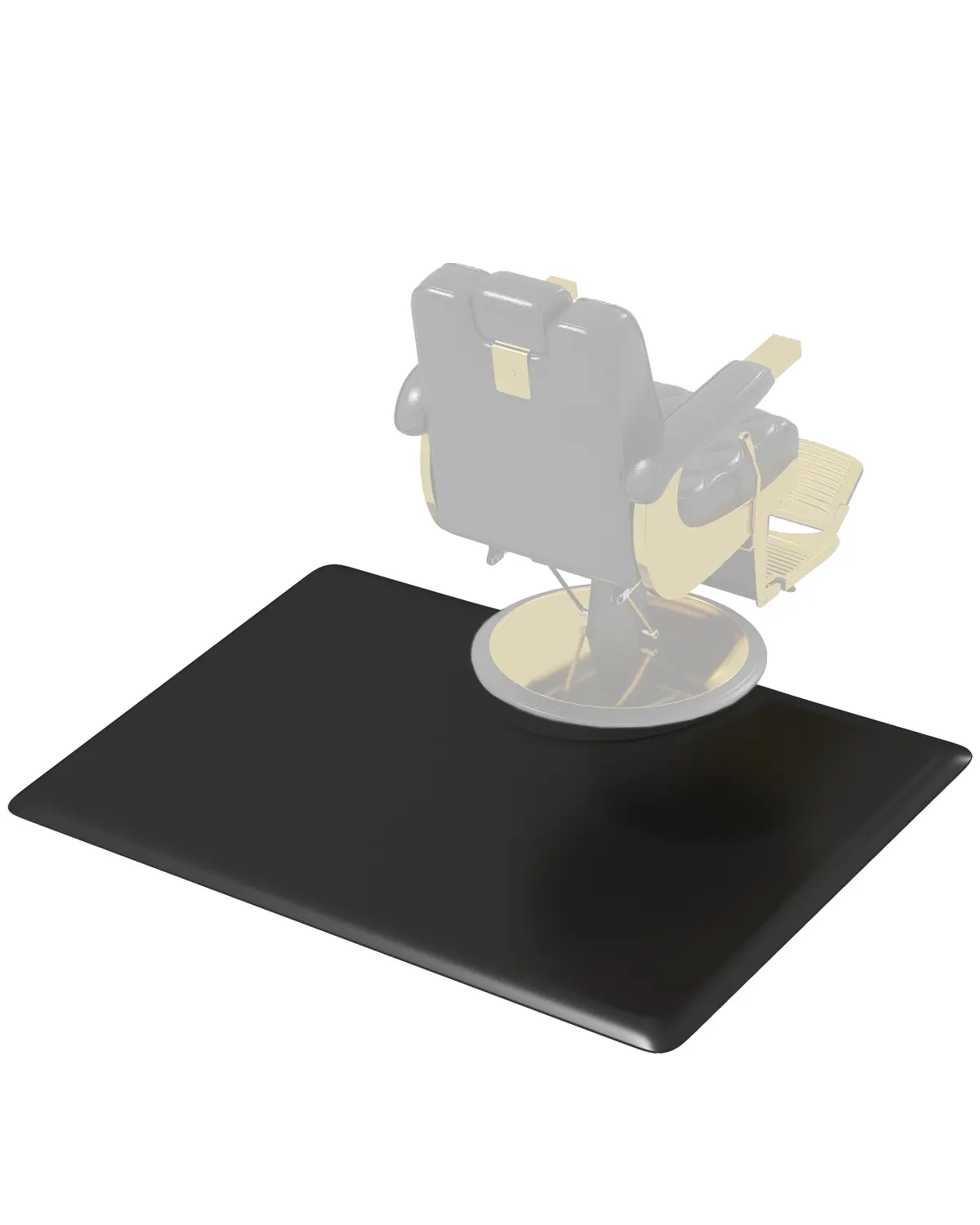 The Barber Chair Mat is a 3 ft x 4 ft black rectangle mat, designed for salons. It's 1/2 in thick, ensuring durability and comfort. The mat is non-slip, providing stability during use. Perfect for supporting barbers and clients, it offers anti-fatigue properties. This mat is a practical addition to any salon setup.
