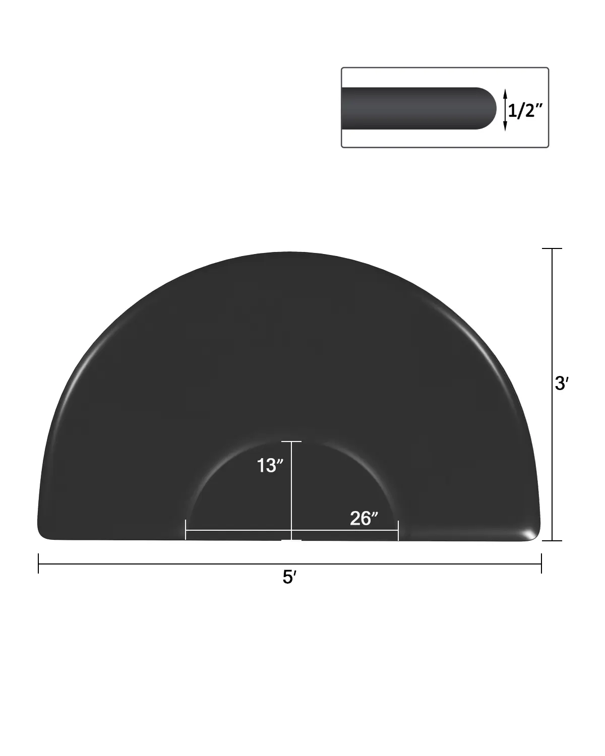 ✨ Semi Circle Barber Chair Mat designed for salon comfort. This mat measures 3 inches by 5 inches, with a thickness of 1/2 inch. It's specifically crafted to provide anti-fatigue support for salon chairs. Ideal for professionals seeking a practical solution for their workspace.