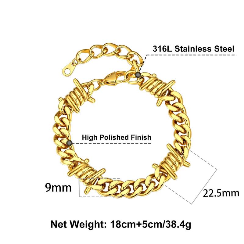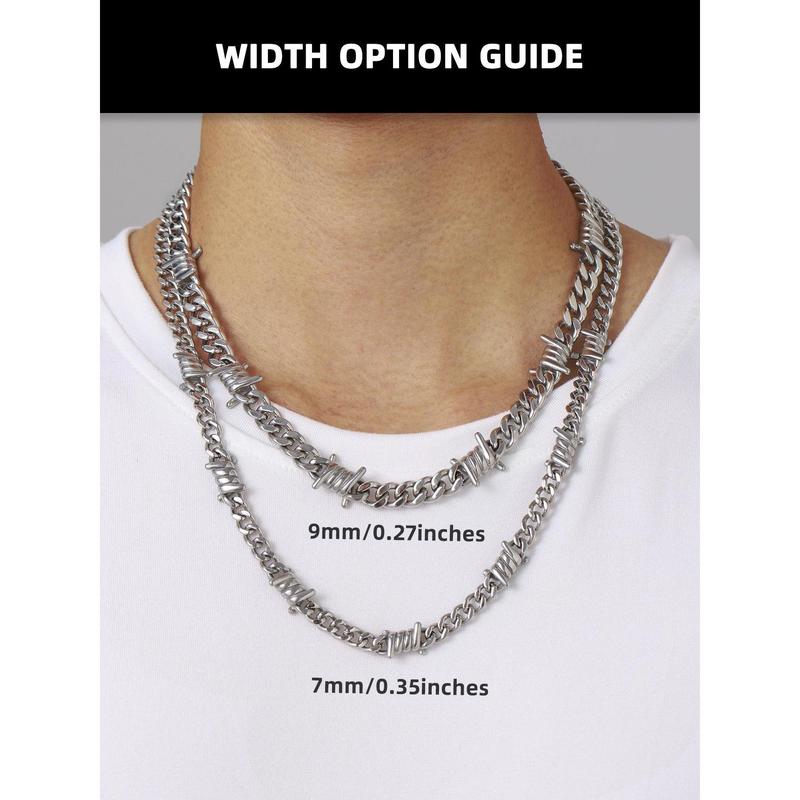 This bracelet is a bold statement piece, designed with a gothic aesthetic. It features a heavy, thick Cuban link design, perfect for those who love a strong, durable accessory. The barbed wire thorns add an edgy touch, making it ideal for gothic enthusiasts. Crafted from stainless steel, it ensures longevity and resistance to corrosion.