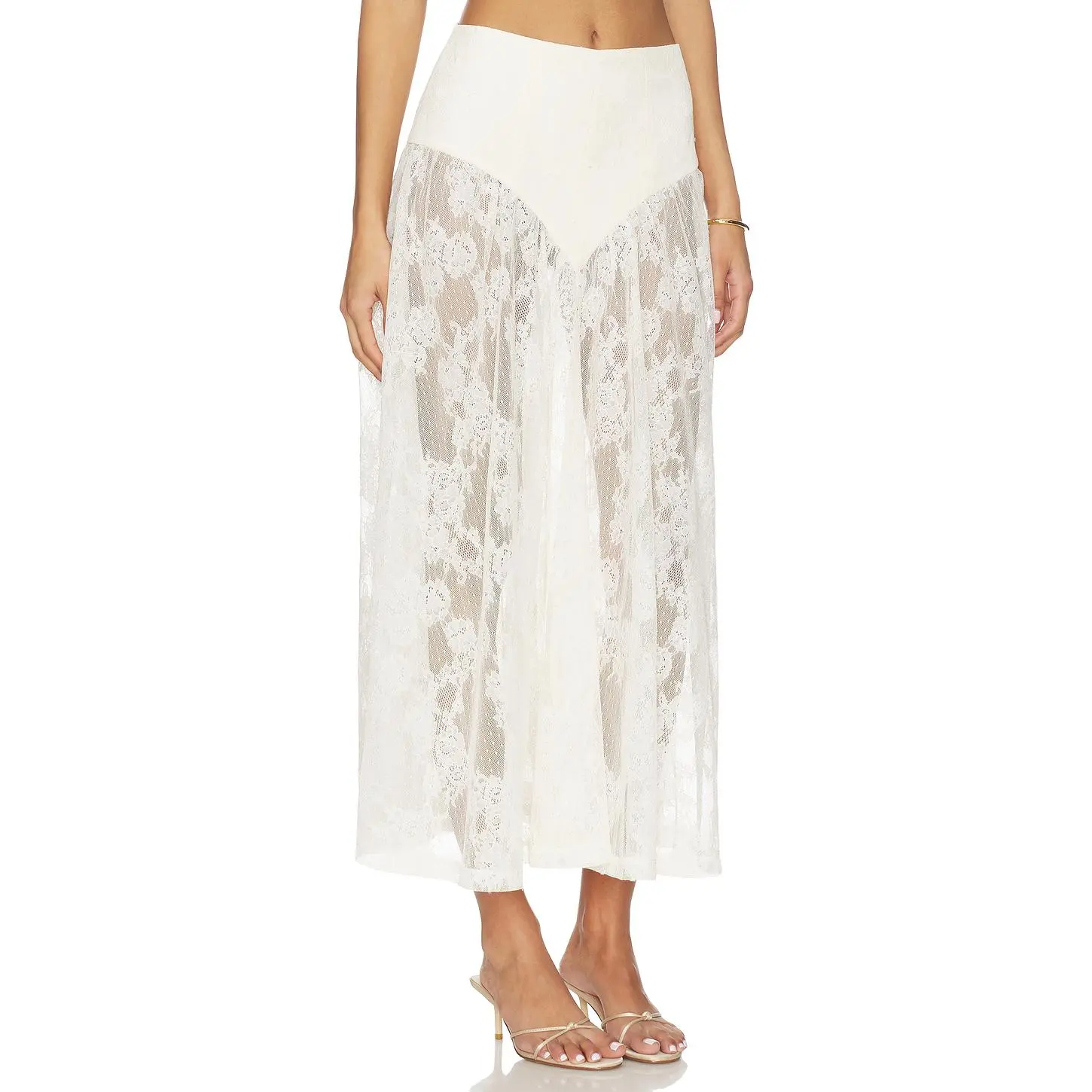 5. Bardot Hildie High Waisted Midi Skirt in Light Beige