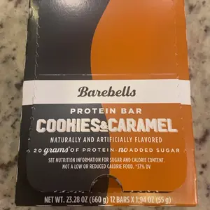 ·BAREBELLS COOKIES AND CARAMEL PROTEIN BAR - A set of 12 or 24 dividual yummy Barebells protein bars! Say goodbye to bland bars and hello to a treat that tastes as good as dessert. This new addition takes the classic Cookies and Cream flavor to the next level – it’s salty, crunchy, and sweet. Once you bite into the cookie and chocolate-flavored core, it’s a taste you’ll keep coming back for more! With its silky milk chocolate cover, smooth caramel layer, and crunchy crisp toppers, this bar boasts 20 grams of protein and *no added sugar.