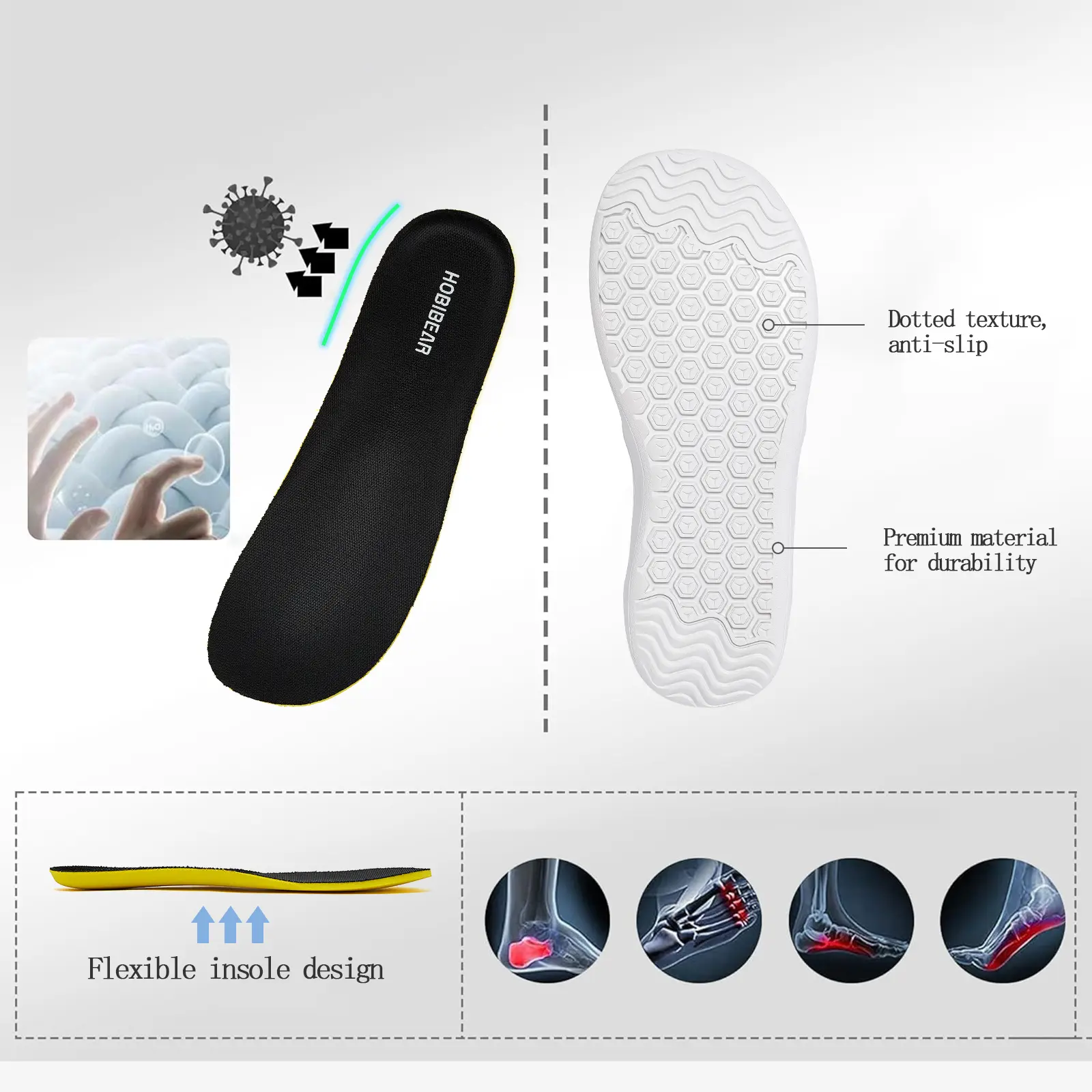 There is NO way they should say anti-slip!!! These were the most slippery shoes I have ever encountered. You WILL fall. These are NOT for people with high arches!!!! They will kill your feet. They are a nice quality material but other than that, a waste of my money and a very painful experience.