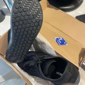 I haven't opened the box yet because I am still wearing the exact same pair to work. My feet are so happy that I cannot stand the thought of not having another pair at the ready. My feet had problems, bunions, plantar. They feel like barefoot but with shock absorbtion. My feet are healed.