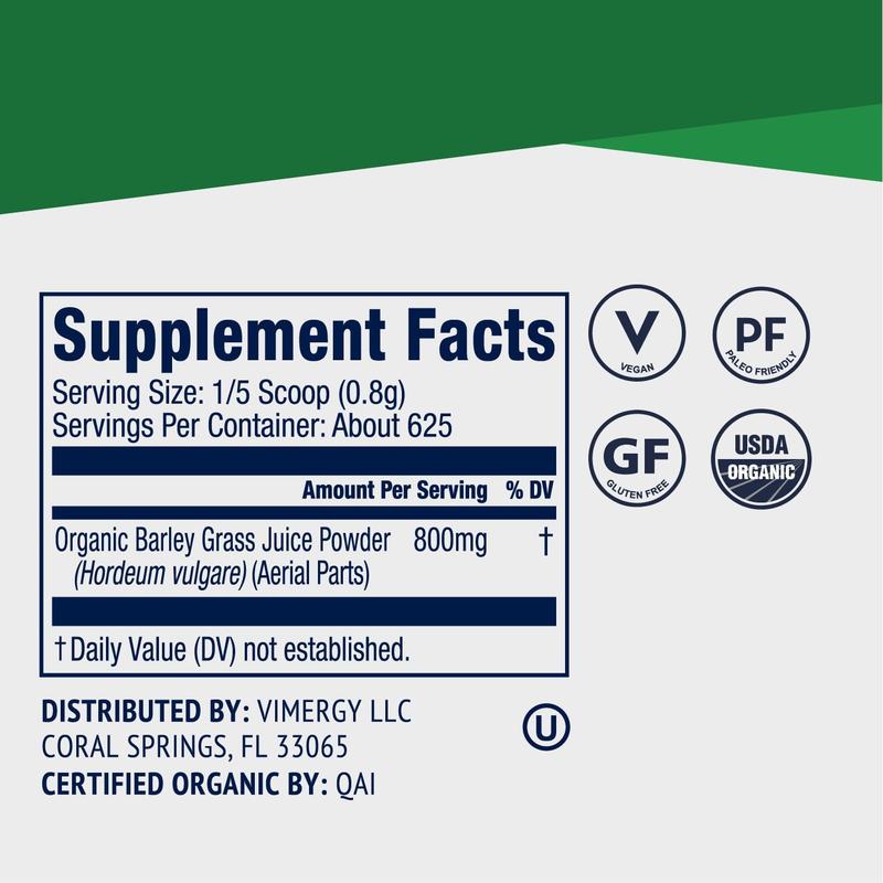 Vimergy Organic Barley Grass Juice Powder is a raw food super green bursting with micronutrients, gram for gram, it packs 3x the calcium in milk & 10x the iron of spinach!