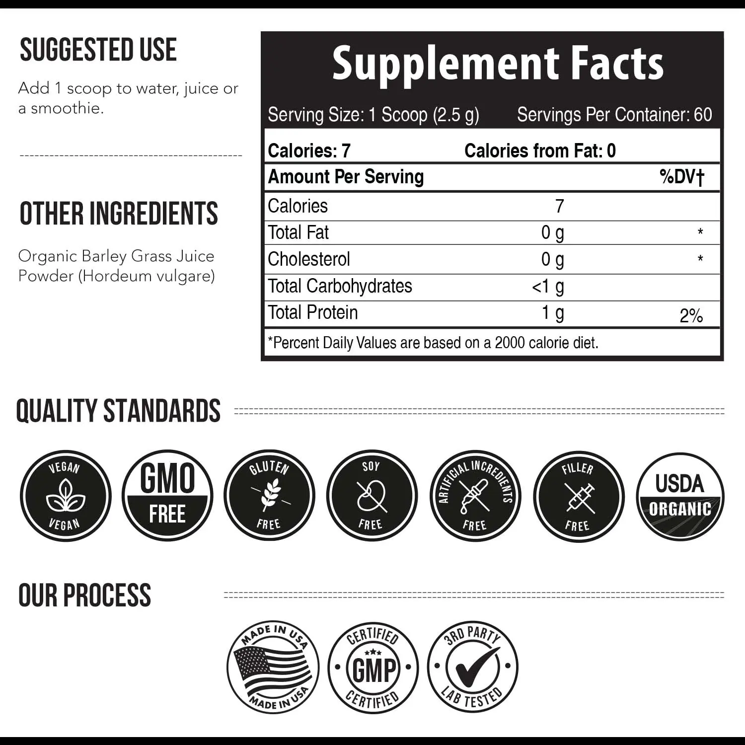Incredible fresh taste and smell. Turns my smoothie a rich green. I feel great after consuming it after just a few days.