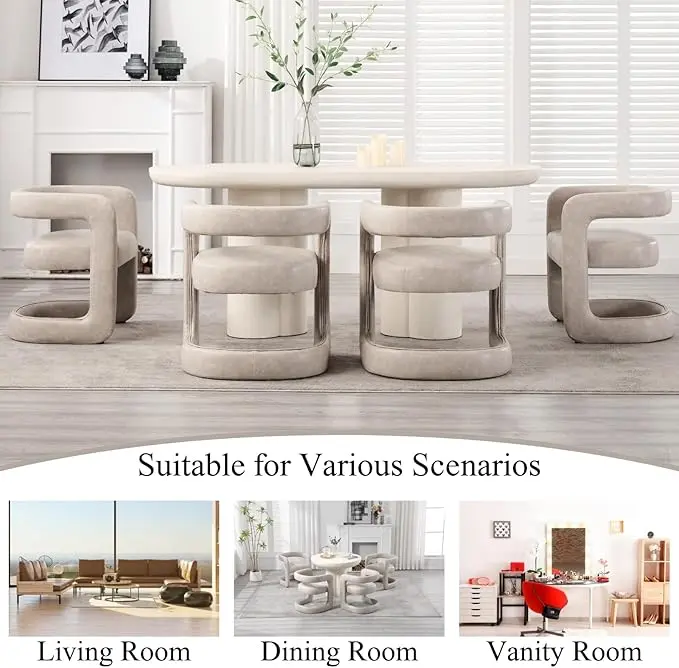【Multi Functional Use】With an elegant and simple appearance, it is perfect for any space such as a makeup vanity table, dining room, bedroom, living room, reading area, balcony, home office. The most important thing is that the chair does not need to be assembled, you just need to place it in the appropriate position