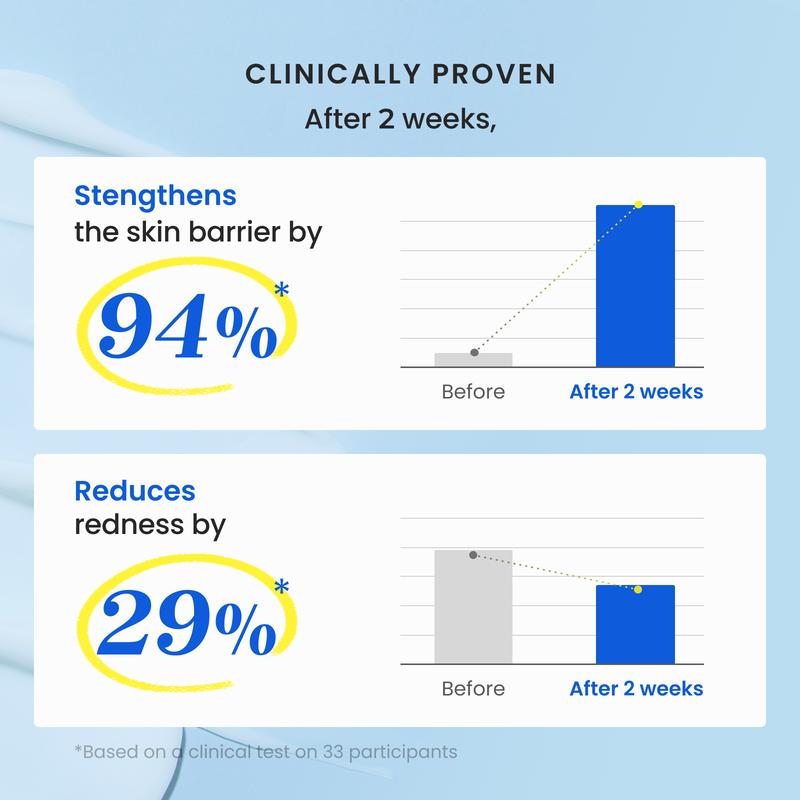 Enhances soothes the irritated skin by 29% and strengthens the skin barrier by 94% based on a clinical study of 20 participants in 2 weeks.