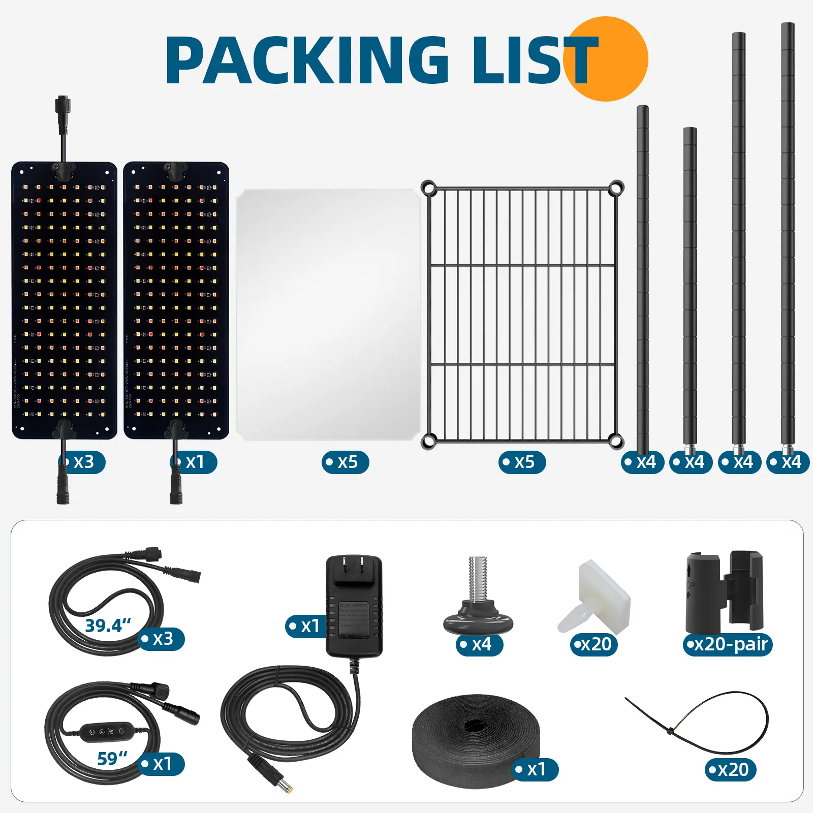 ·Combination of High Shelf and Grow Light: 5-Tier Plant Stand-15.7"L x 11.8"W x 59.1"H plant stand indoor and 4-pack 40W (4 x 10W) plant light panels.