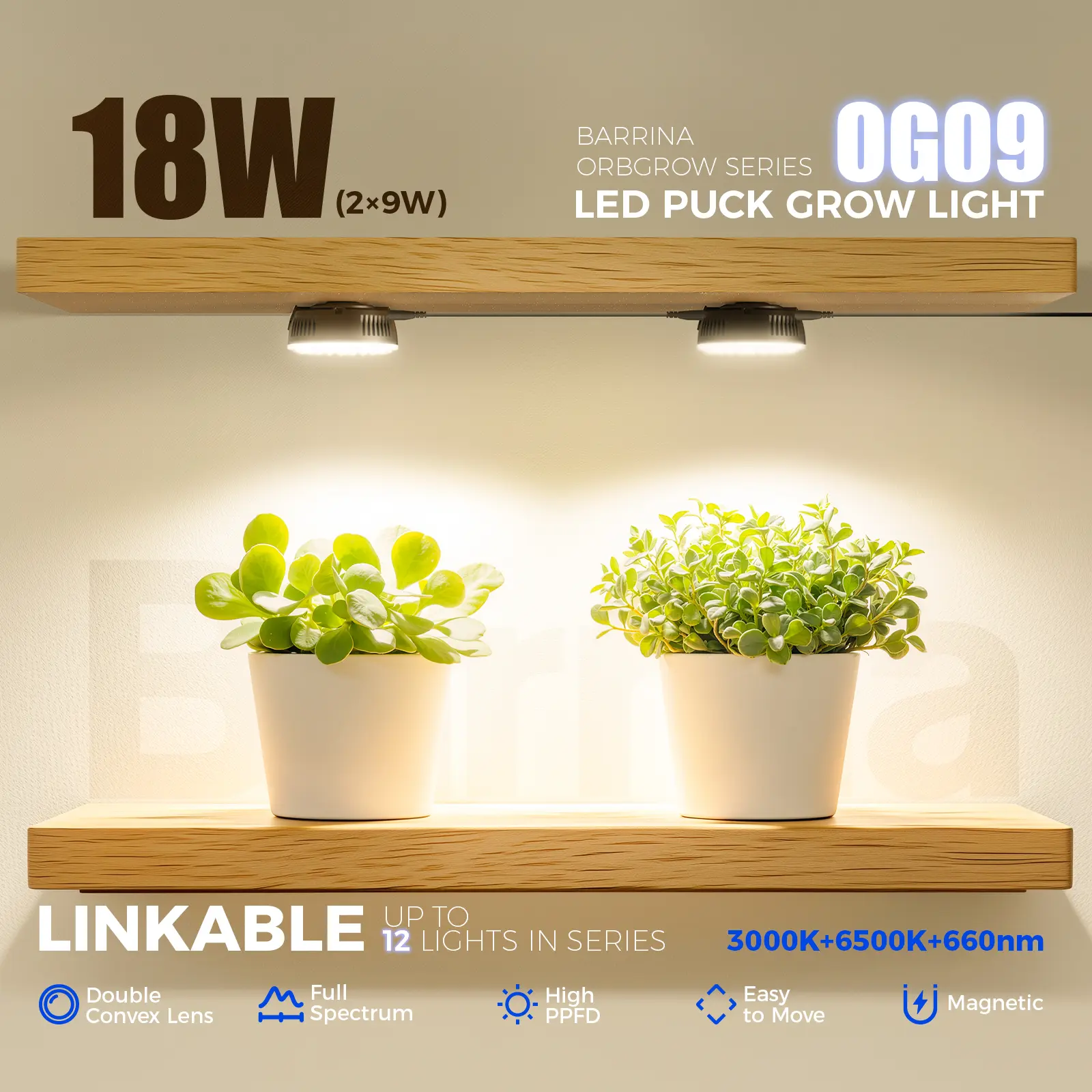·Red Wavelength 660nm with CRI 89: The Barrina Puck Grow Light features a 660nm red wavelength with a CRI of 89, delivering targeted spectrum efficiency for optimal photosynthesis. Ideal for microgreen, fruiting, foliage plants and flowering species etc., this grow light supports healthy growth from seedlings to bloom, ensuring your indoor garden flourishes