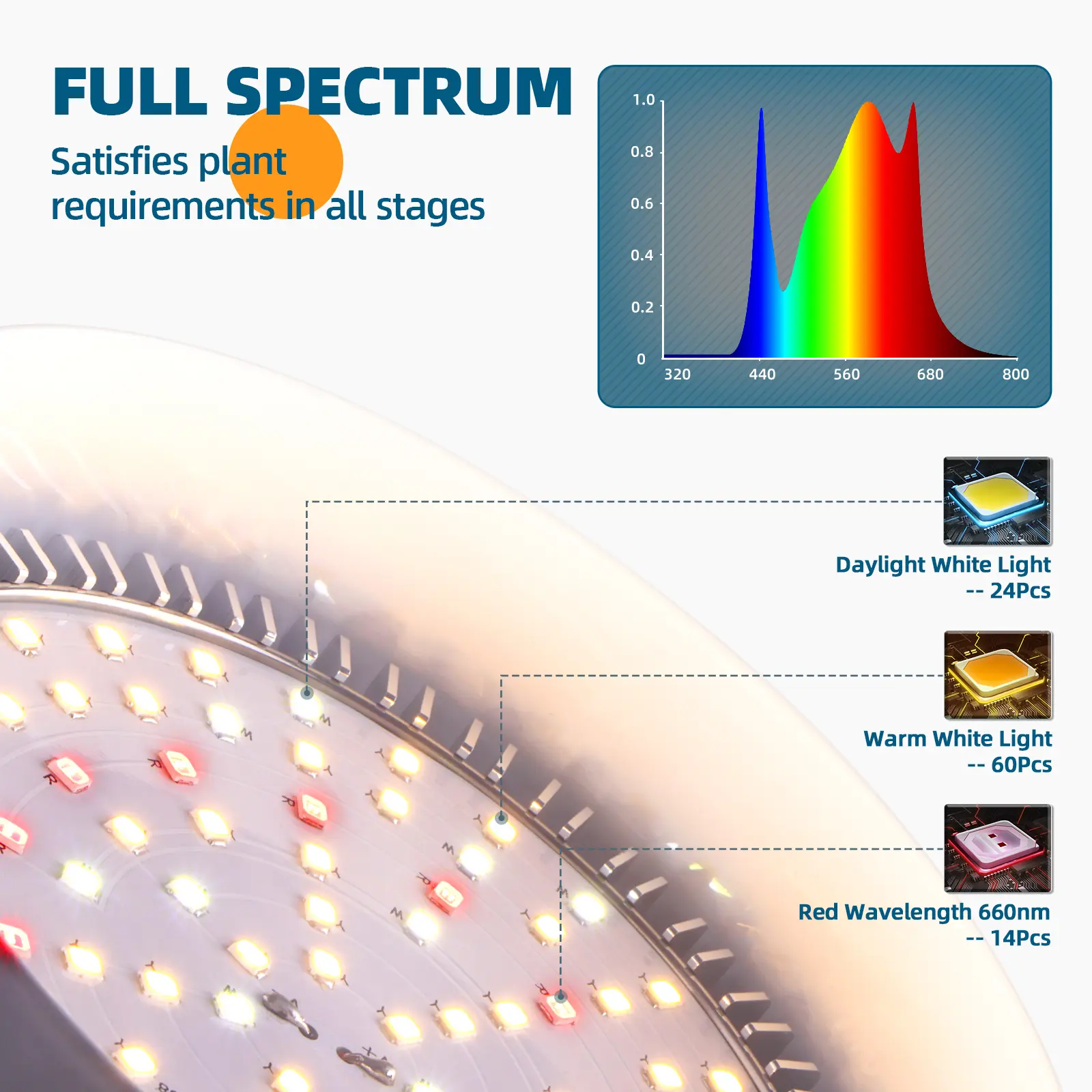 ·Effective Spectrum: This barrina full-spectrum grow light bulb produce 2100 lumens of brightness at a height of 8 inches and features up to 98 LEDs, compared to traditional growing lights, this led grow light consumes only 25watts of energy, making it a more scientifically advanced option