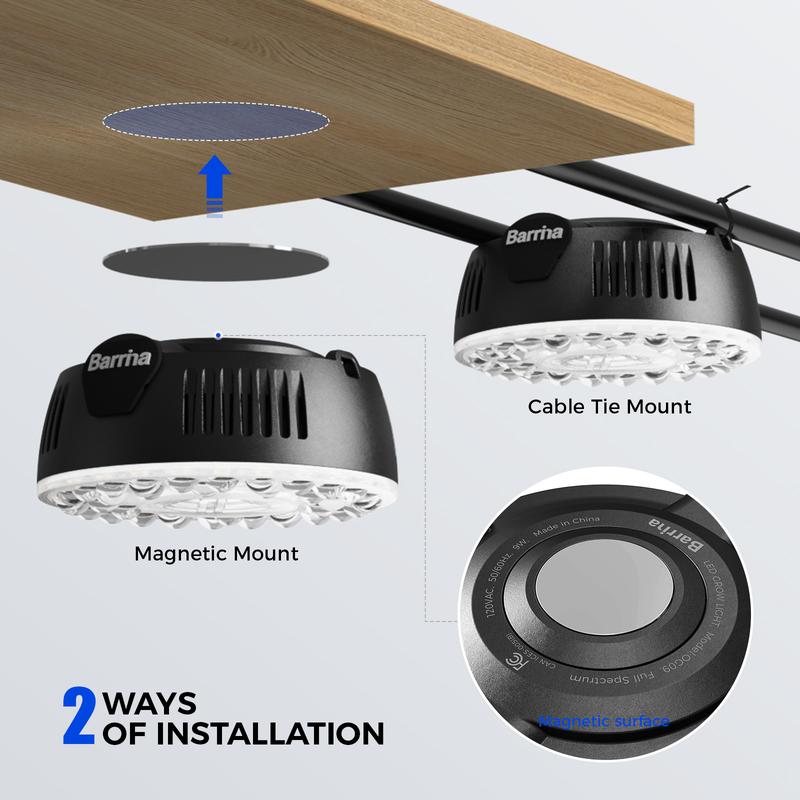 ·Full Spectrum with CRI 98: The Barrina Puck Grow Light offers full spectrum efficiency with a Color Rendering Index (CRI) of 98, providing the ideal light wavelengths for photosynthesis at all plant growth stages. From seedlings to flowering, this grow light ensures your indoor plants thrive
