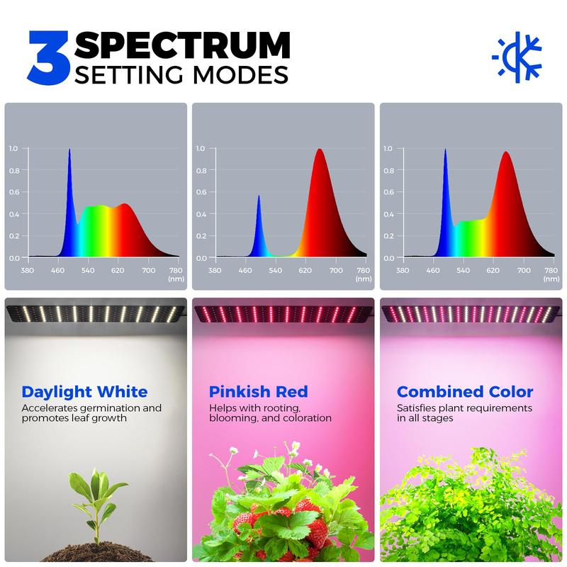 ·Full Spectrum Grow Light: Included with the indoor greenhouse is a 2FT 40W high-output and IP65 water resistant plant light panel that has three spectrums to meet your plants' needs at different stages. It also features 7 brightness levels and 3 timing functions (3H/9H/12H), is color-changing, dimmable, and has a timer that repeats daily based on your settings