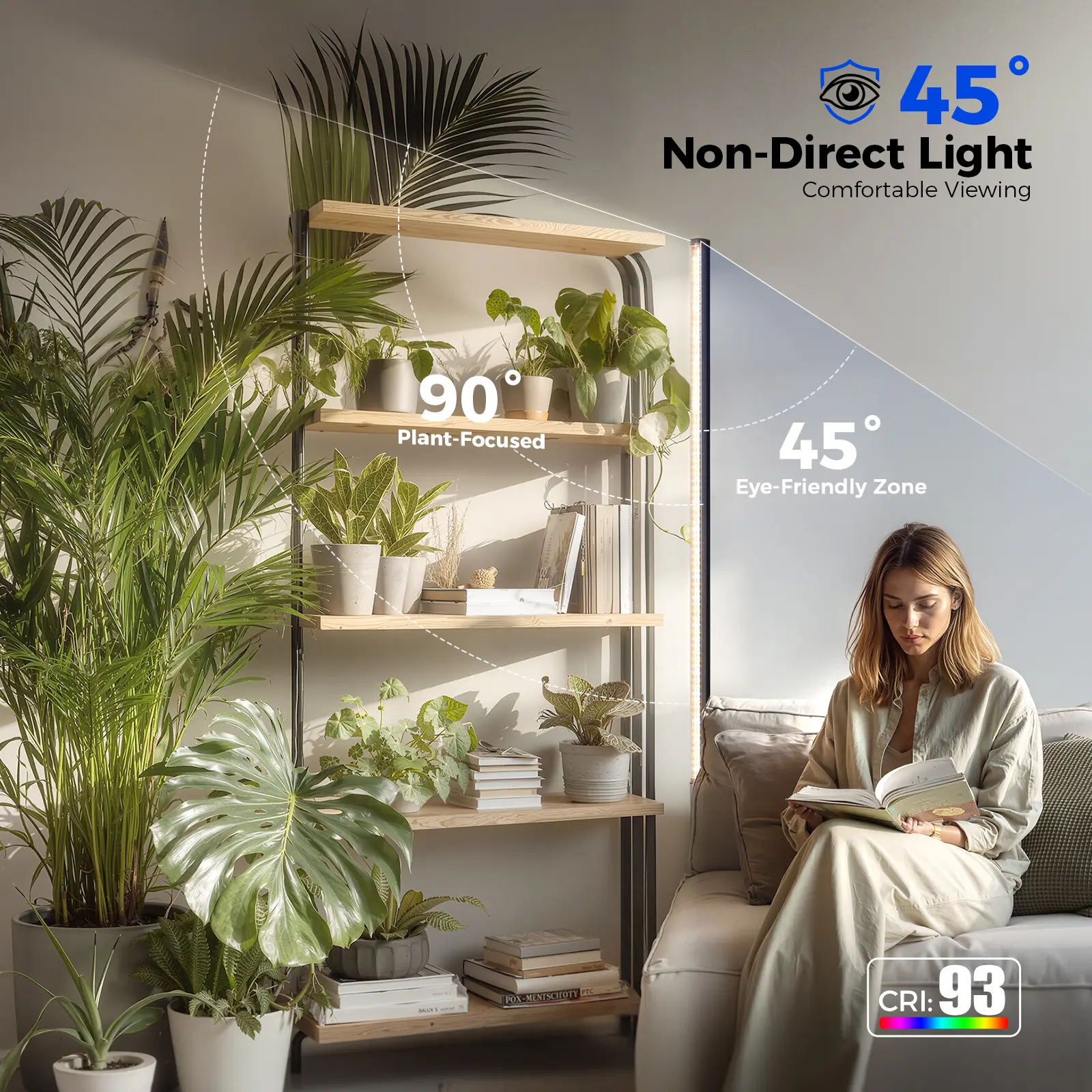 ·Low-Glare Side Illumination with CRI 93 : Designed for dual use, T1S combines functional plant lighting with comfortable brightness. Its 45° npn-glare design and side illumination technology minimize eye strain when viewed from the side, while high CRI ensures color rendering—brightening living spaces without harsh glare