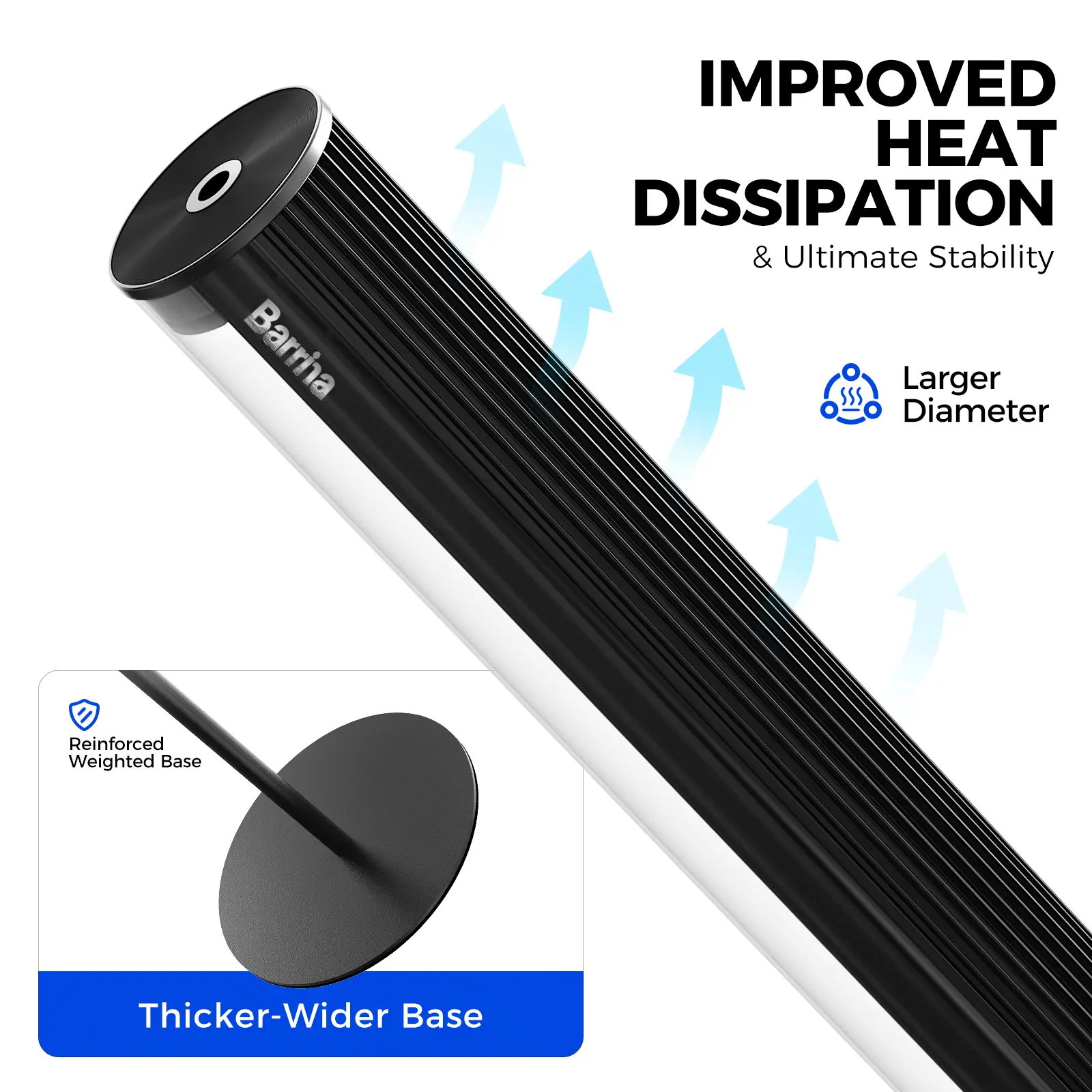 ·Black & Silver Design for Home:Barrina T1S Vertical plant light prioritizes stability and durability. The thicker round base and wider lamp diameter enhance heat dissipation, while aluminum construction ensures long-term performance