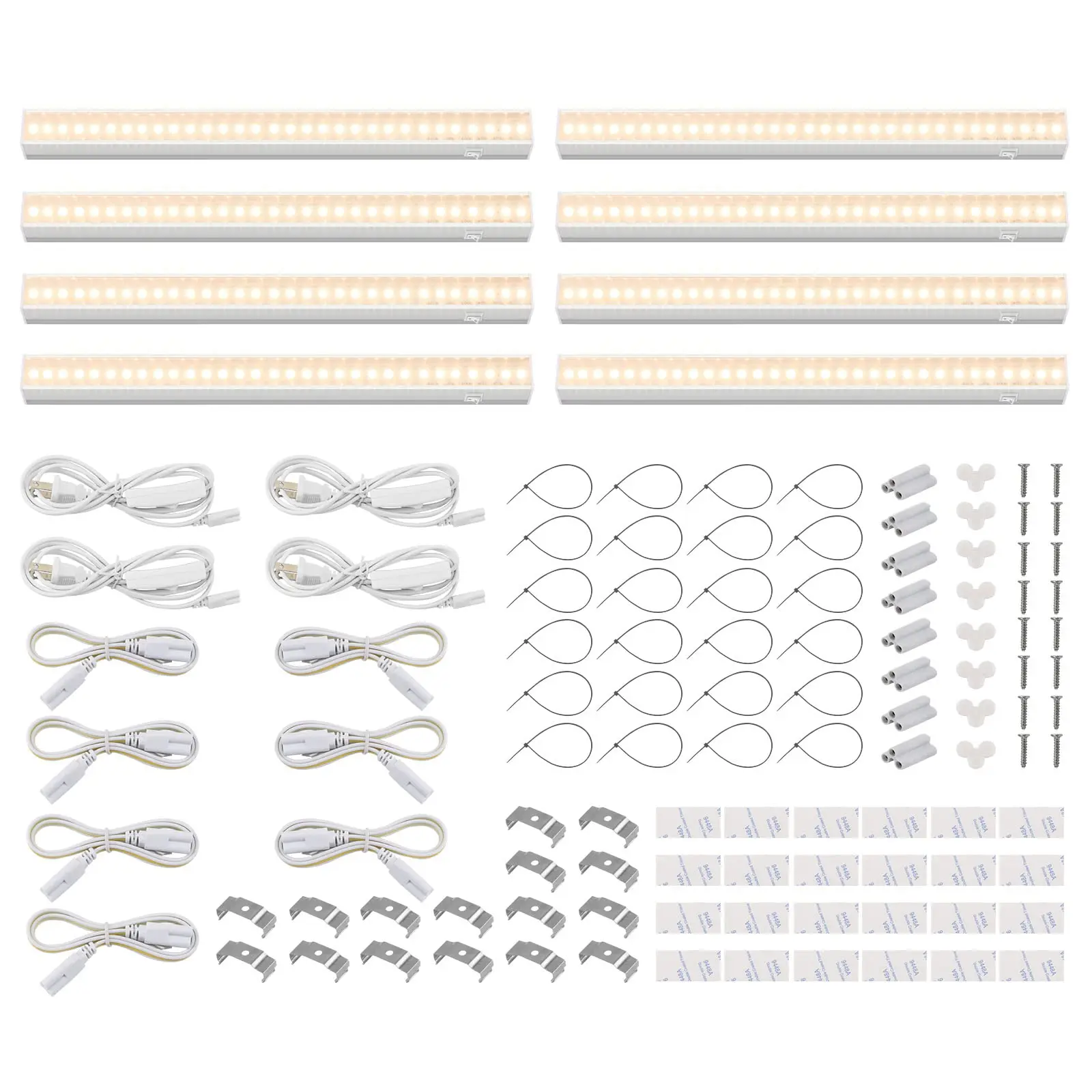 ·What You Get: 8 x Barrina T5 Grow Lights, 4 x Power Cords with ON/OFF Switch, 7 x Connecting Cords(20''), 8 x Small Connectors, 16 x Installation Clips, 24 x Double-sided Tapes, 24 x Cable Ties. 2-Year Warranty. If you have any questions, please contact Barrina.