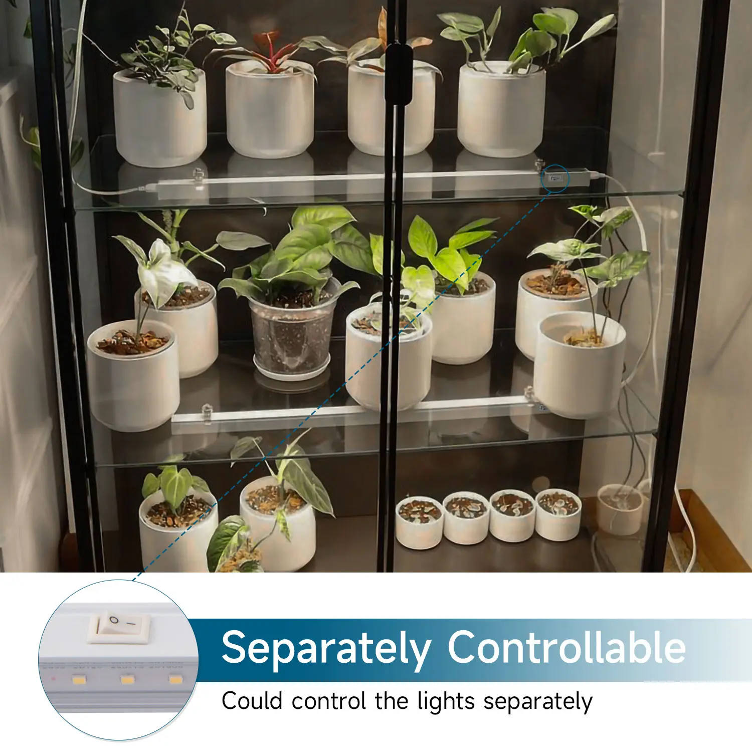 ·【Separately Controllable】Each grow lights have on/off switch on the surface of housing, controlling the lights separately or together according PPFD that plants need and you could link up to 16 lights in a series.