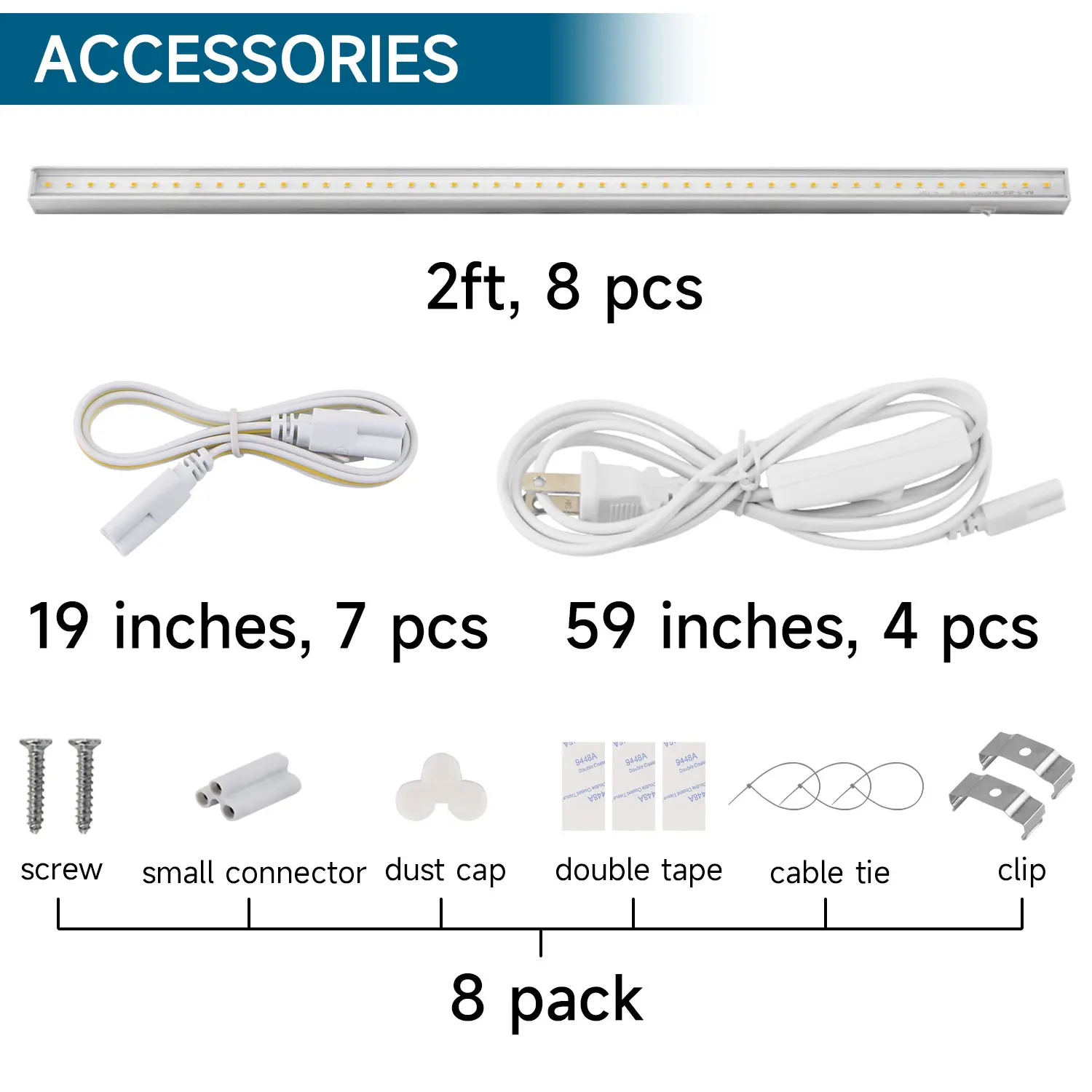 ·【What You Get】2 years warranty. 8 x Barrina T5 Grow lights, 4 x Power Cords with ON/OFF Switch, 7 x Connecting Cords, 8 x Small Connectors, 16 x Installation Clips, 24 x Double-sided Tapes, 24 x cable ties, 2-Year Warranty. If you have any questions, please contact Barrina.