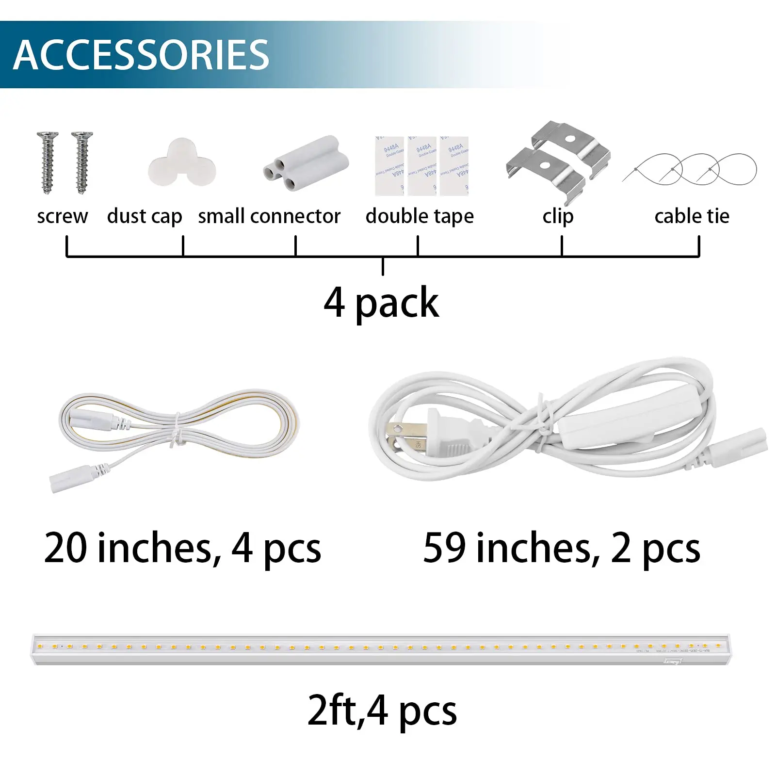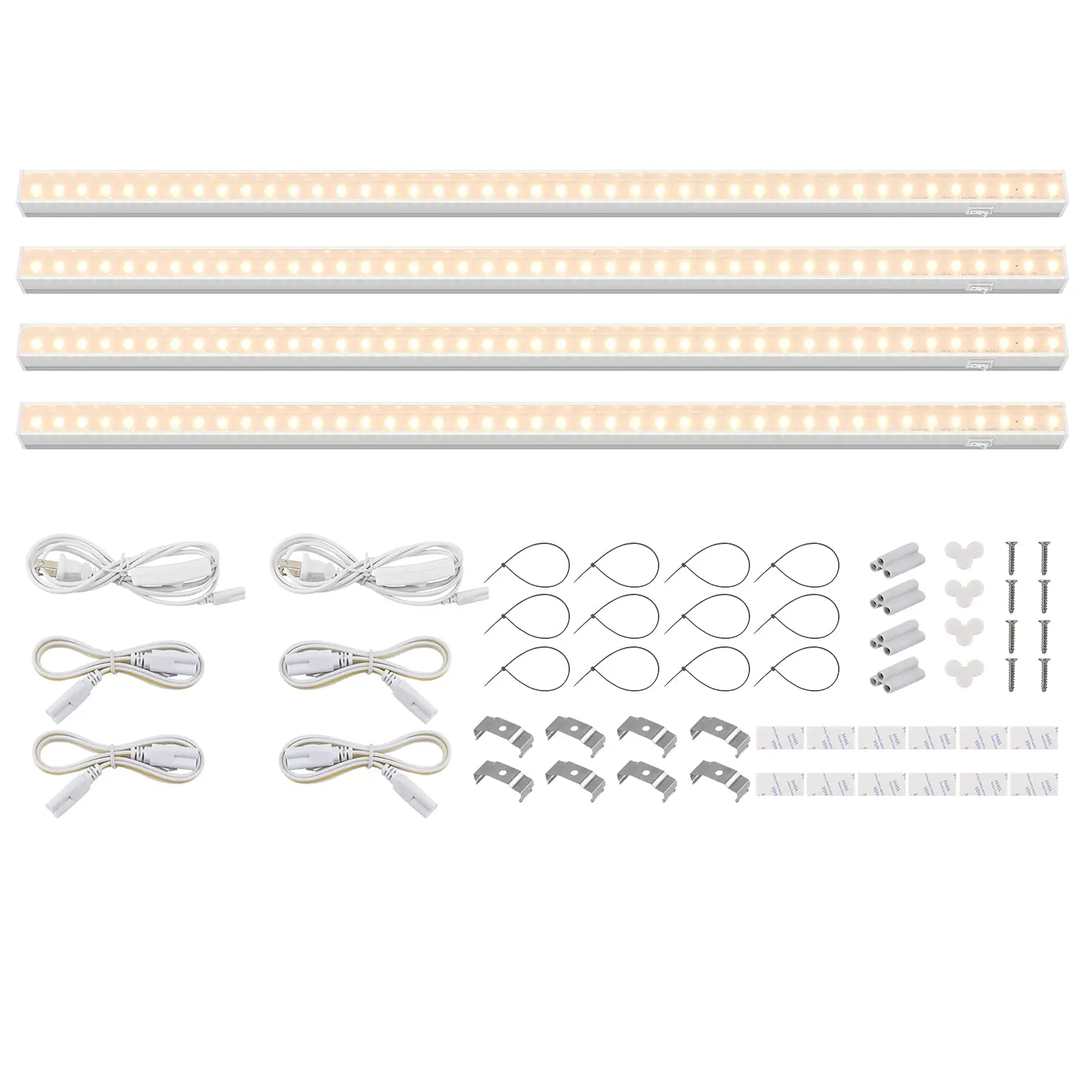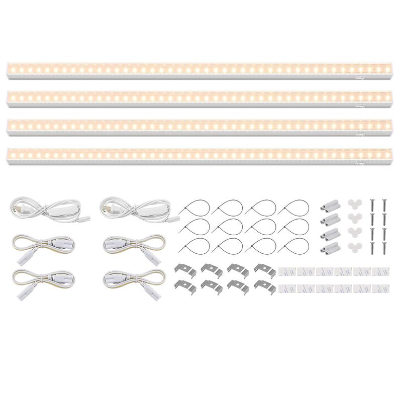 ·What You Get: 4 x Barrina T5 Grow lights, 2 x Power cords with ON/OFF switch, 4 x Connecting Cords(20''), 4 x Small Connectors, 8 x Installation Clips, 12 x Double-sided Tapes, 12 x cable ties, 2-Year Warranty. If you have any questions, please contact Barrina.