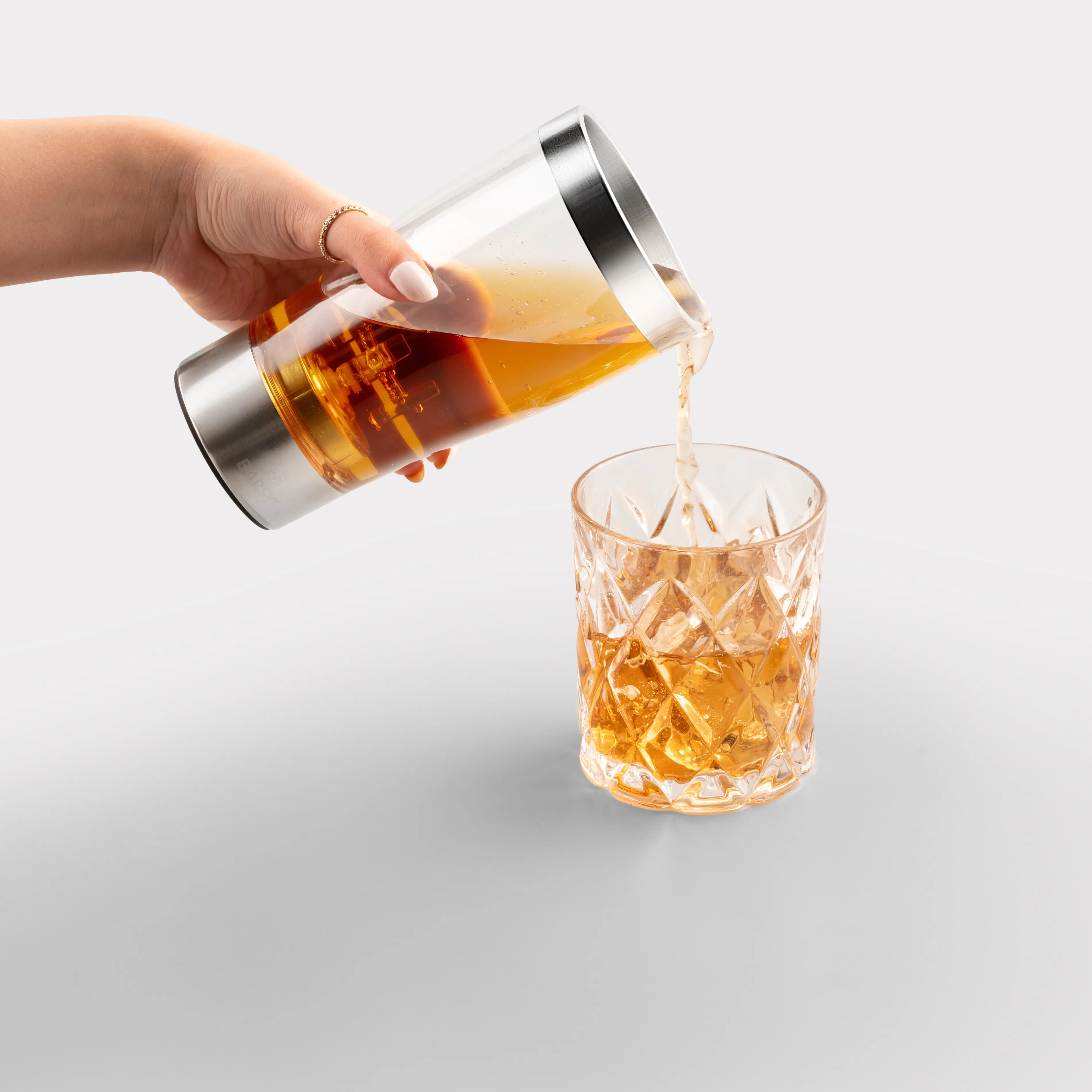 Very neat glass. Sit it on the barsys coaster and it stirs as you pour stuff in. Keeps the drink mixed perfectly. Love it!!