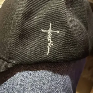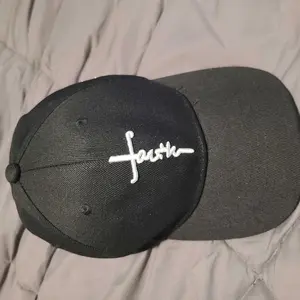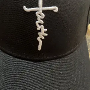 The hat itself is a good quality. The writing isn’t legible, it’s supposed to say “faith” but it seems like it says “forth”.