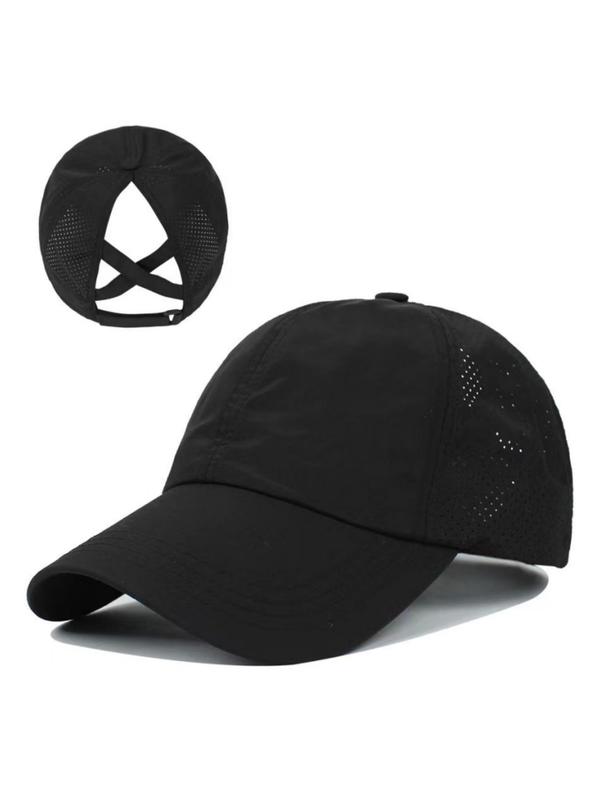 So cute. Definitely a mesh background but it's not that hard mesh like the trucker hats. It is adjustable in the back which is great and perfect size in the holes so that I can slide my ponytail in and be ready to hit the golf course.