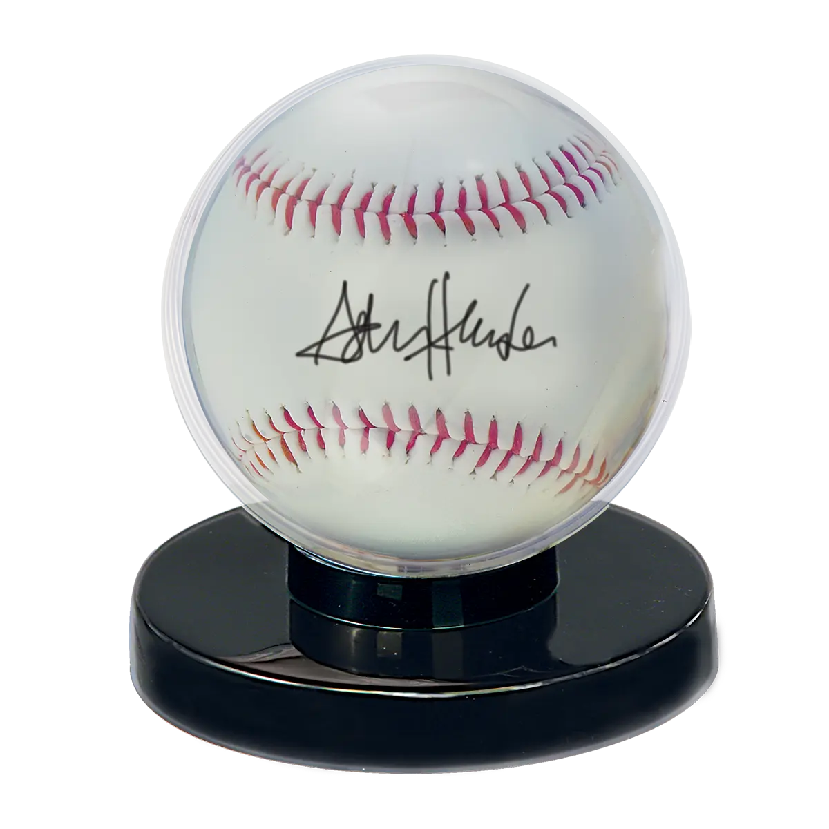 Acrylic ultra clear holder with round lustrous black base. Protects and displays baseball. (*Baseball, card not included)