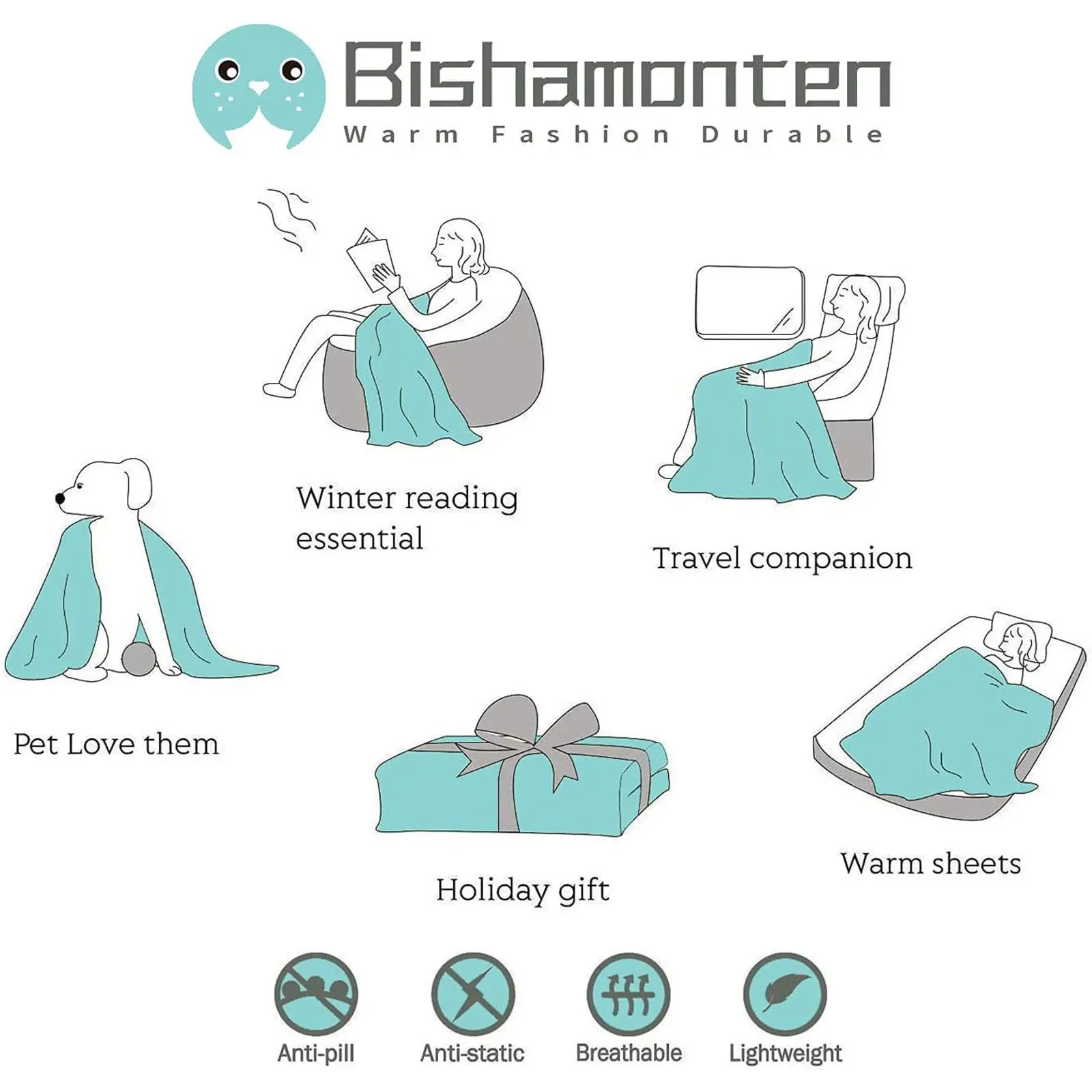 100% polyester with flannel craft- Delicate and soft,non-shedding.Warm in winter, breathable in AC rooms.Gentle on skin, no stuffiness.