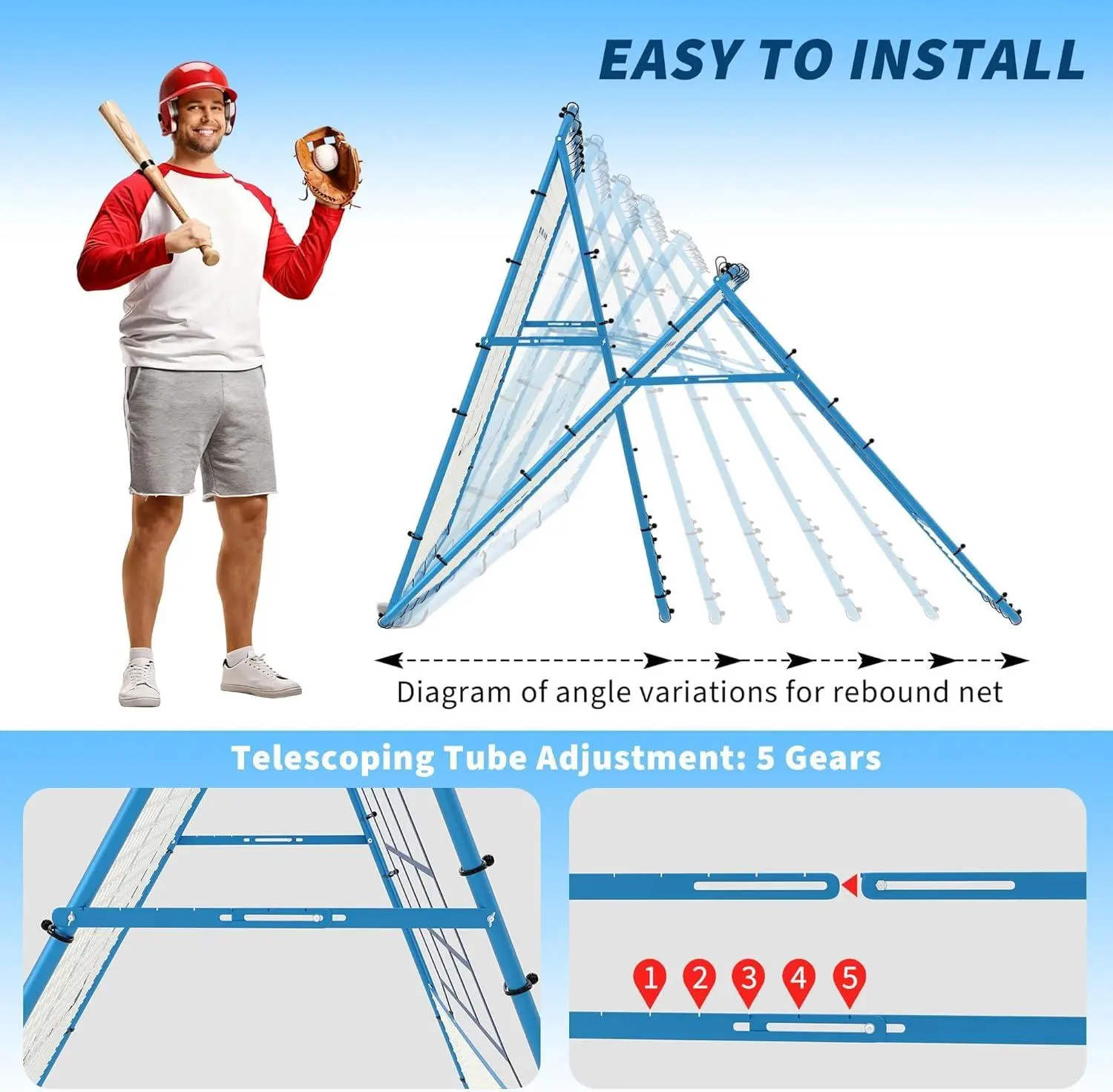 Adjustable rebound net for skill development: This training net offers various angle options, allowing you to customize your training sessions. It's ideal for pitching, batting, and fielding drills and helps replicate realistic game situations, promoting continuous improvement.