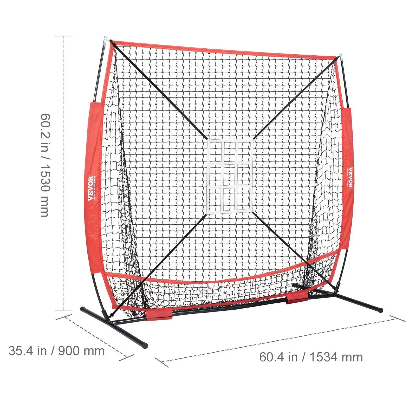 5. VEVOR 5x5 ft Baseball Softball Practice Net, Portable Baseball Training Net for Hitting Batting Catching Pitching, Backstop Baseball Equipment with Bow Frame, Carry Bag, Strike Zone, Ball, Batting Tee