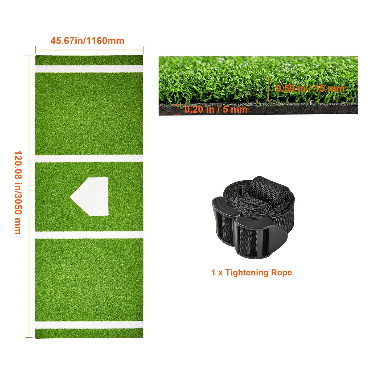 • Standard Size Design: This batting and hitting mat boasts an overall dimension of 10x3.8 feet, offering ample space for practicing various pitches. Its standard-size hitting points and stride lines designed for enhanced hitting power can assist you in improving accuracy and performance.