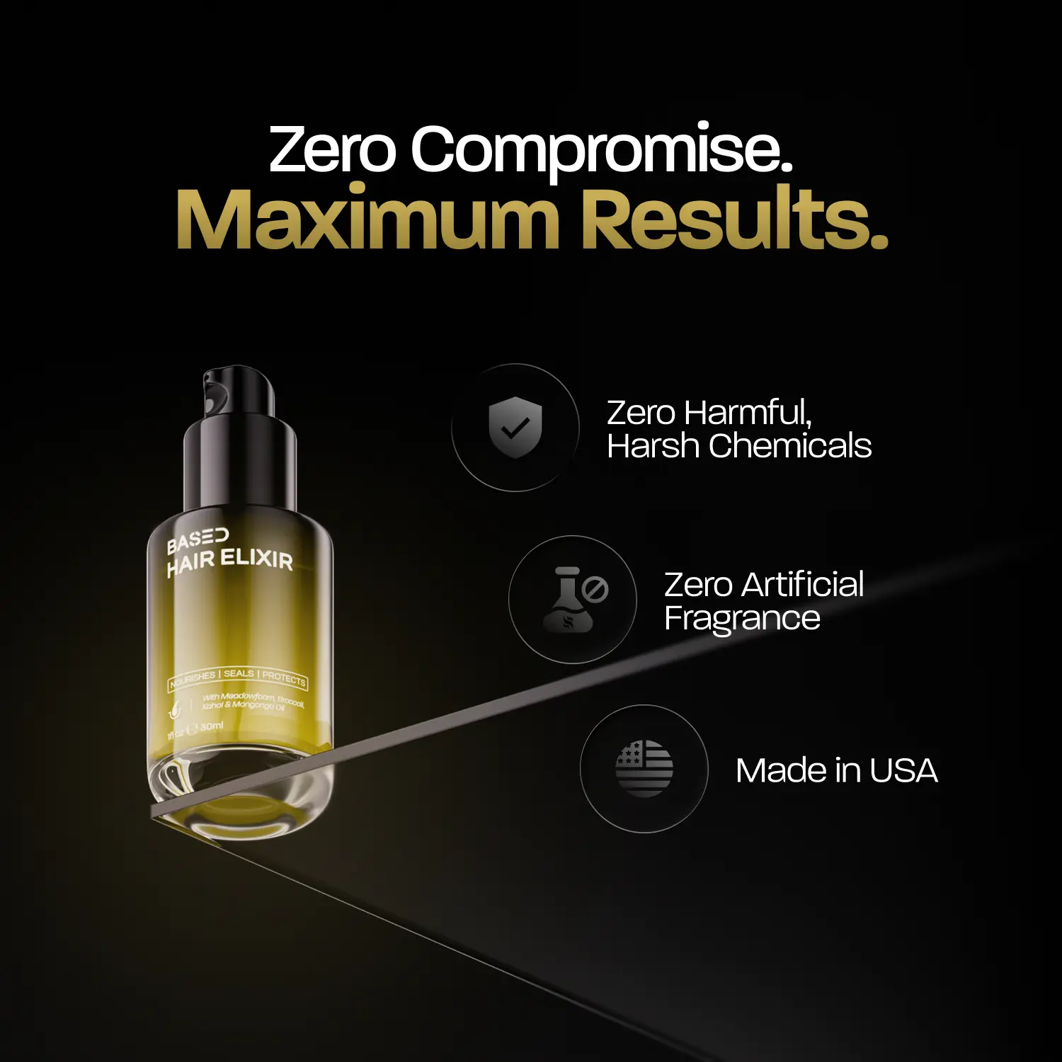 Formulated & filled in the USA, BASED Hair Elixir is engineered for peak performance with zero compromise.