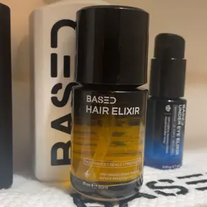 The BASED Hair Elixir is a lightweight, non-greasy hair oil that nourishes, seals, and helps protect your hair — delivering instant shine, color vibrancy, and advanced heat protection.