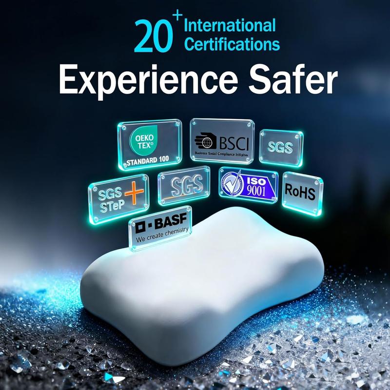 BASF Material Support": Made with German BASF memory foam, it offers slow rebound to fit the cervical curve precisely, providing stable support for the neck and shoulders to relieve daytime strain.