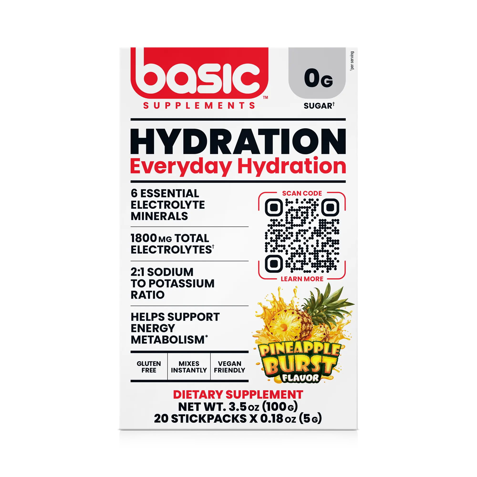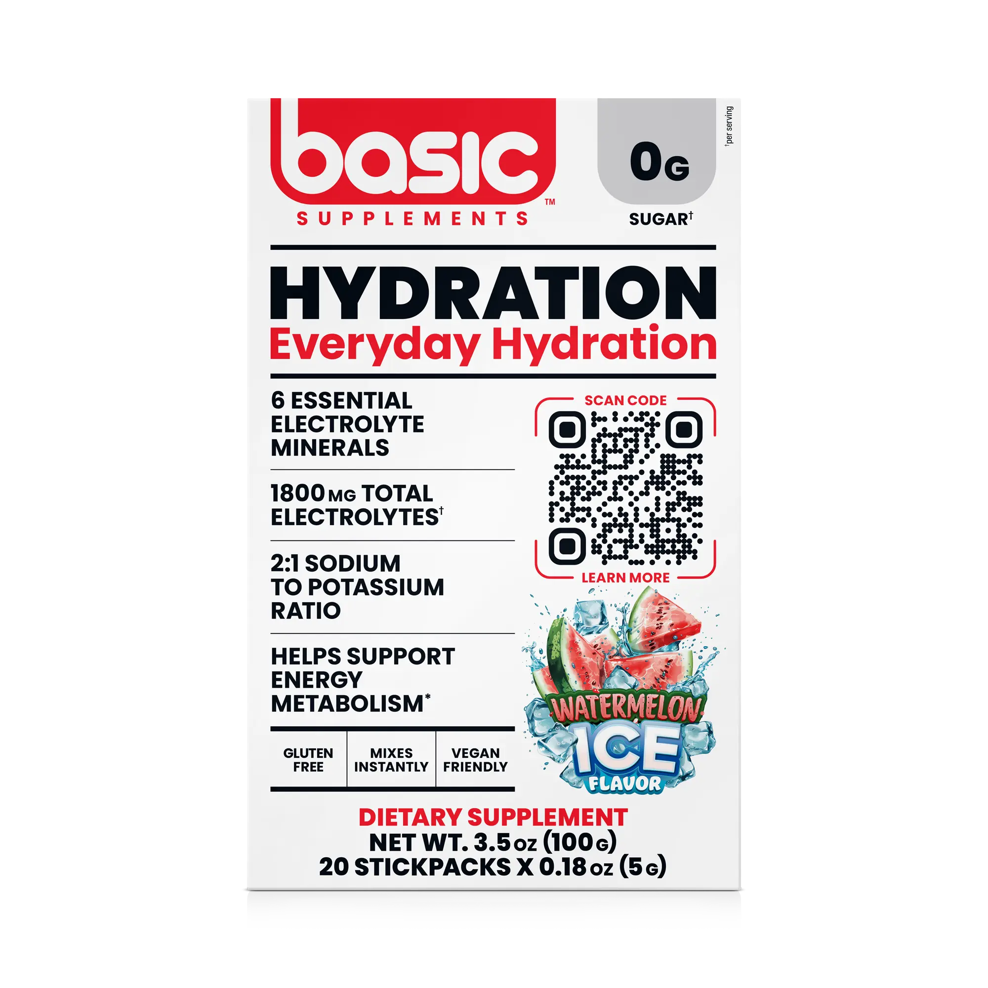 Stay refreshed and energized with Basic Hydration, your go-to electrolyte drink mix. With zero sugar and a clean formula, Basic Hydration supports peak performance and faster recovery, making it the perfect daily hydration solution.