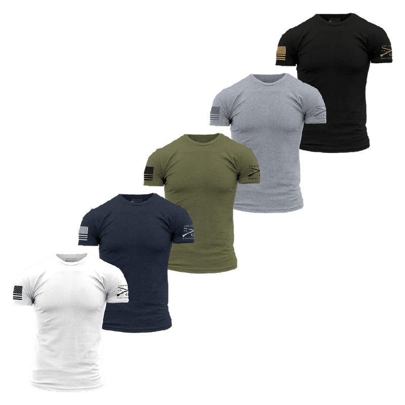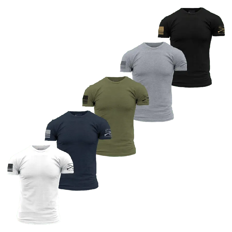 Basic Tees - 5 PackLook no further for your next everyday tee. Your favorite tee is now available in a five pack, so that you're ready to take on the week!Grunt Style Standard Issue Core Basics Tees blends cotton and polyester to create a tougher tee that is more comfortable than your average cotton tee! This shirt is pre-laundered to reduce shrinkage and features a slight heather that makes it the perfect tee for any occasion.Shop the Full Collection of Basics Now!Our 5 Pack Standard Issue Basic T-Shirts — are crafted with the following no-BS details: