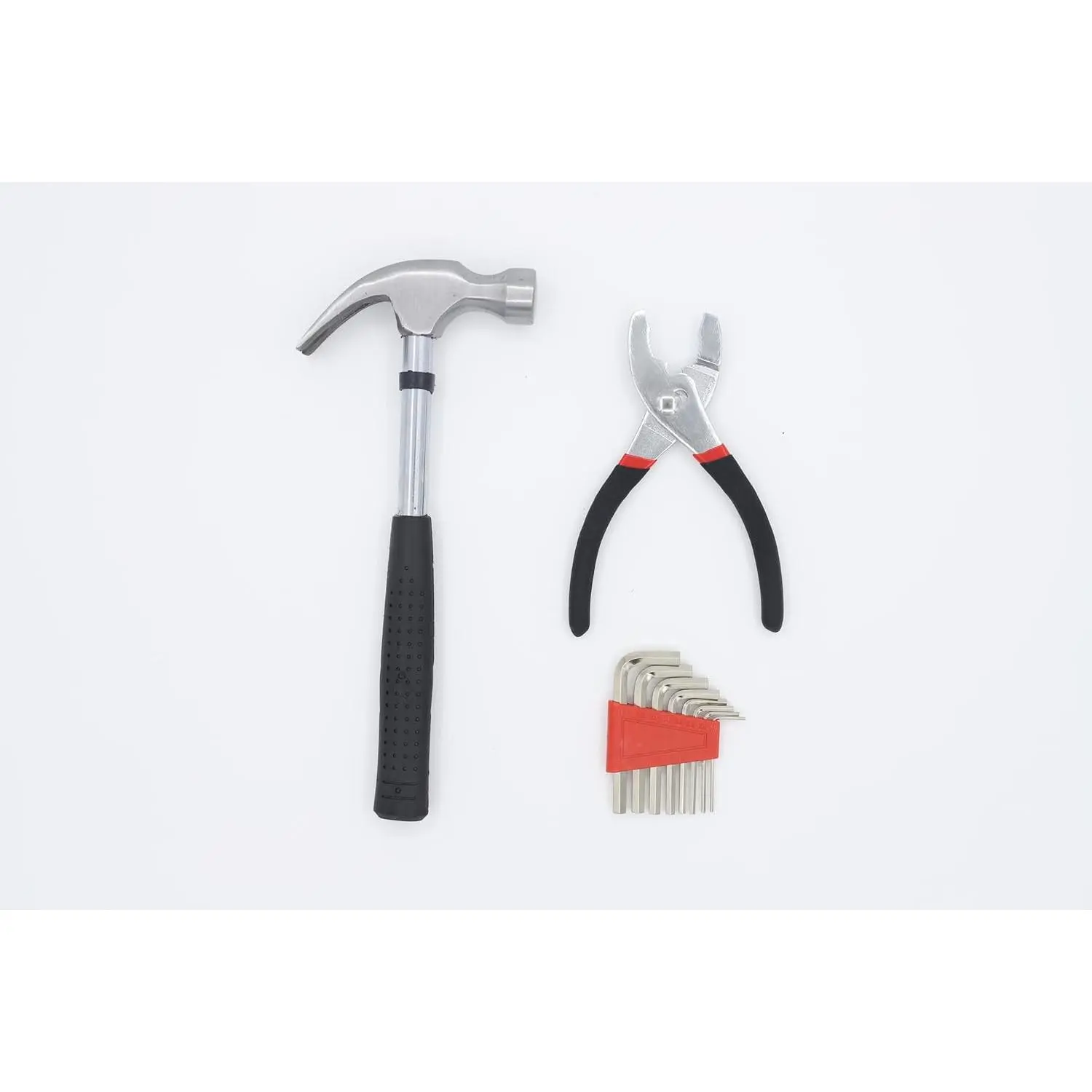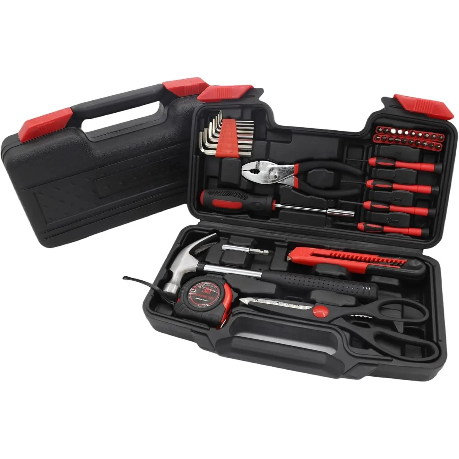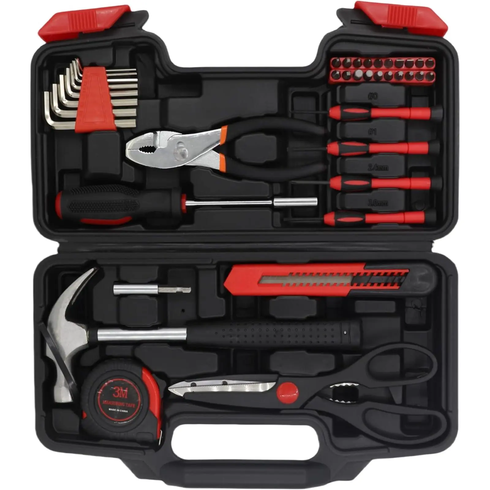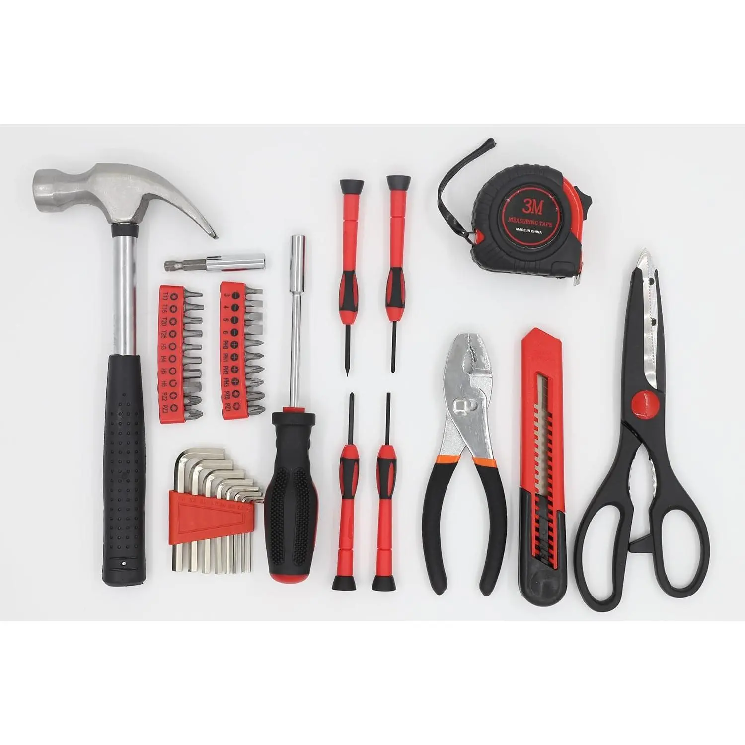 Comprehensive Tool Selection: This tool kit includes: Claw Hammer x 1, Bits x 20, Bit Driver x 1, Bit Holder/extension x 1, Hex x 8, Precision Screwdrivers x 4, Slip Joint Plier x 1, Tape Measure x 1, Utility x 1, Scissor x 1