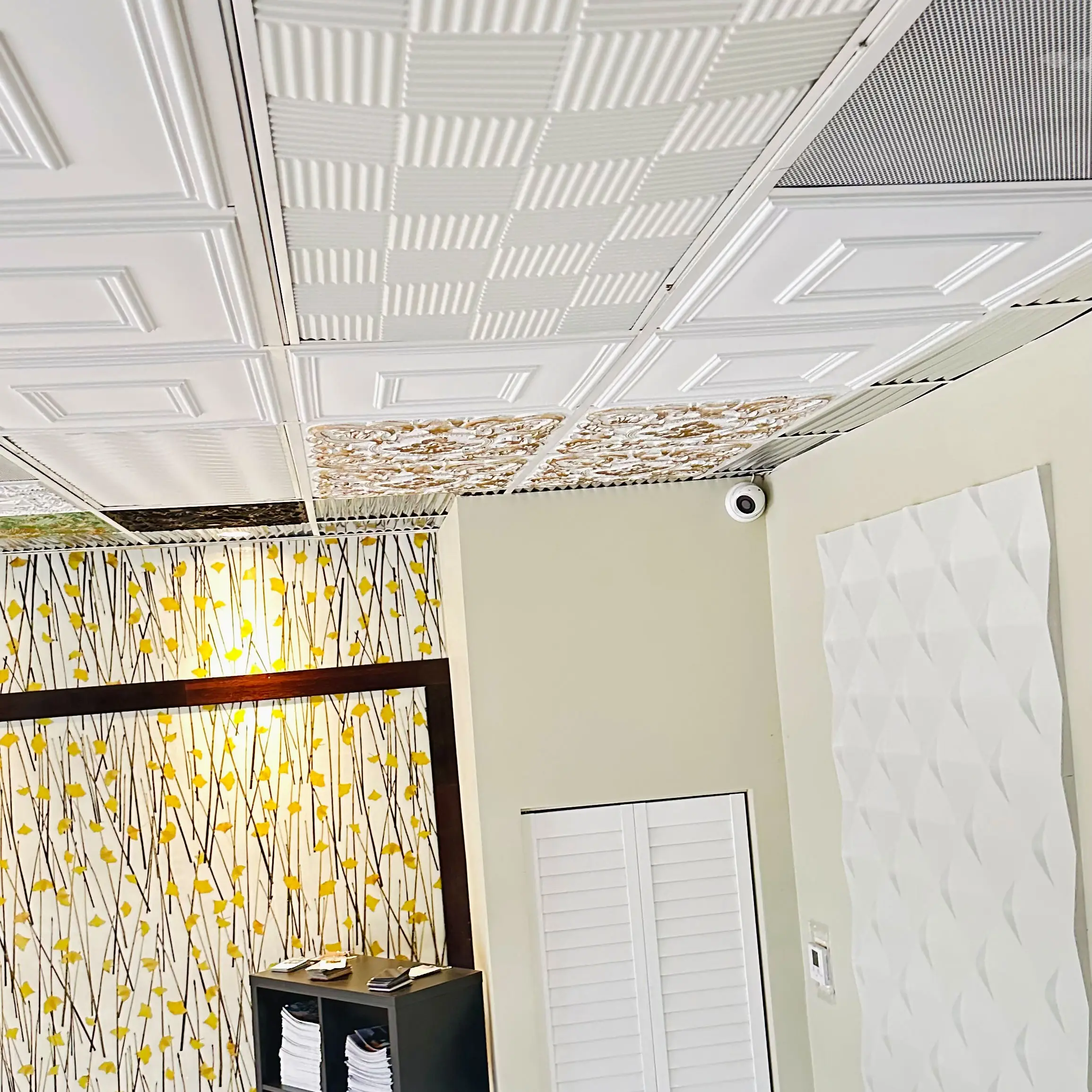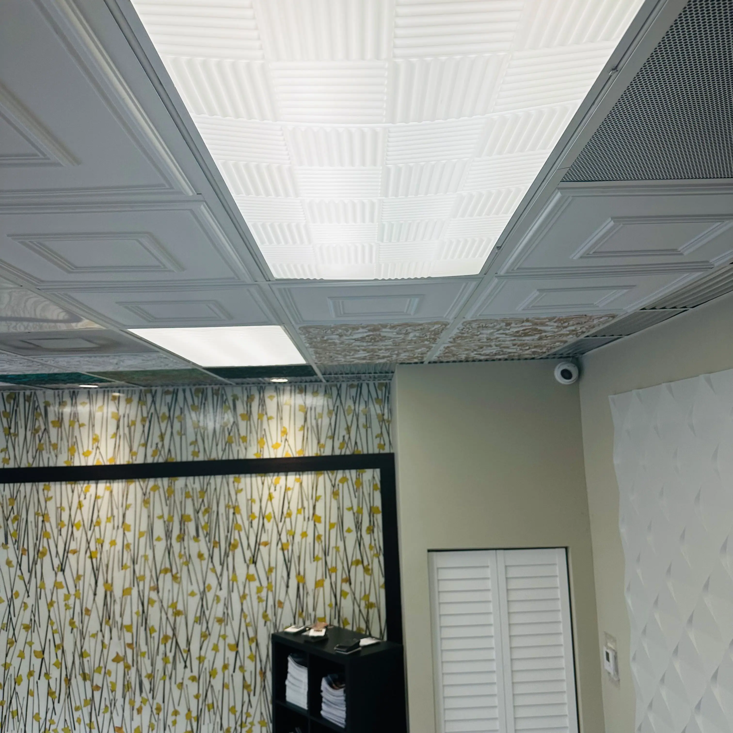 5. From Plain To Beautiful In Hours Basket Weave Ceiling Light Diffuser Panel Tiffany White 22 in x 46 in (Covers /87 sq.ft.) (12/Pack)