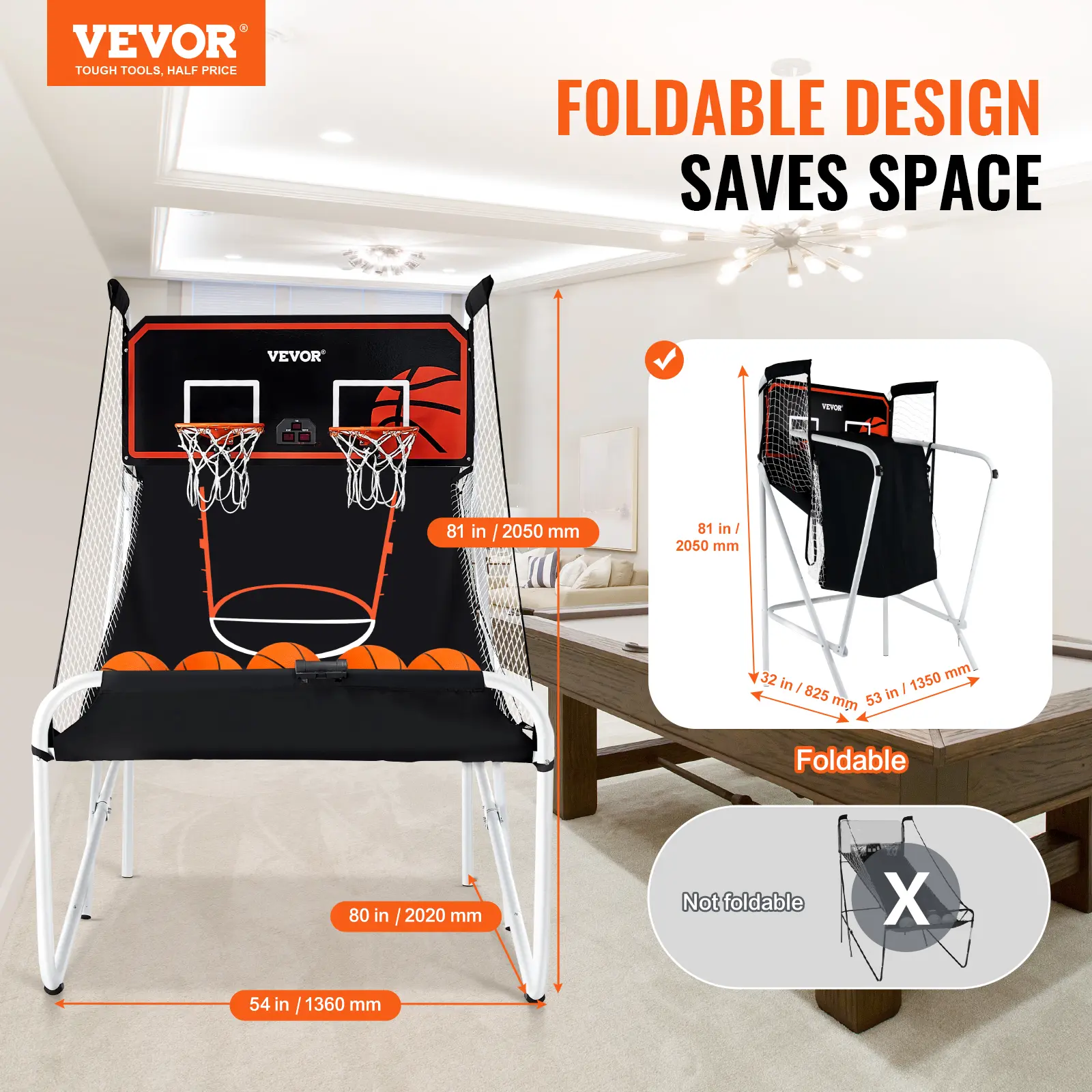 VEVOR Foldable Basketball Arcade Game,  2 Player Indoor Basketball Game, Home Dual Shot Sport with 5 Balls, 8 Game Modes, Electronic Scoreboard, and Inflation Pump, for Adults (Black & White)